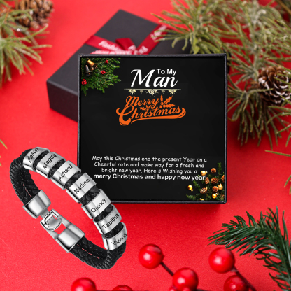 7 Names-Personalized Braided Leather Bracelet Set With Gift Box-Custom Men's Bracelet Engraved 7 Names for Him