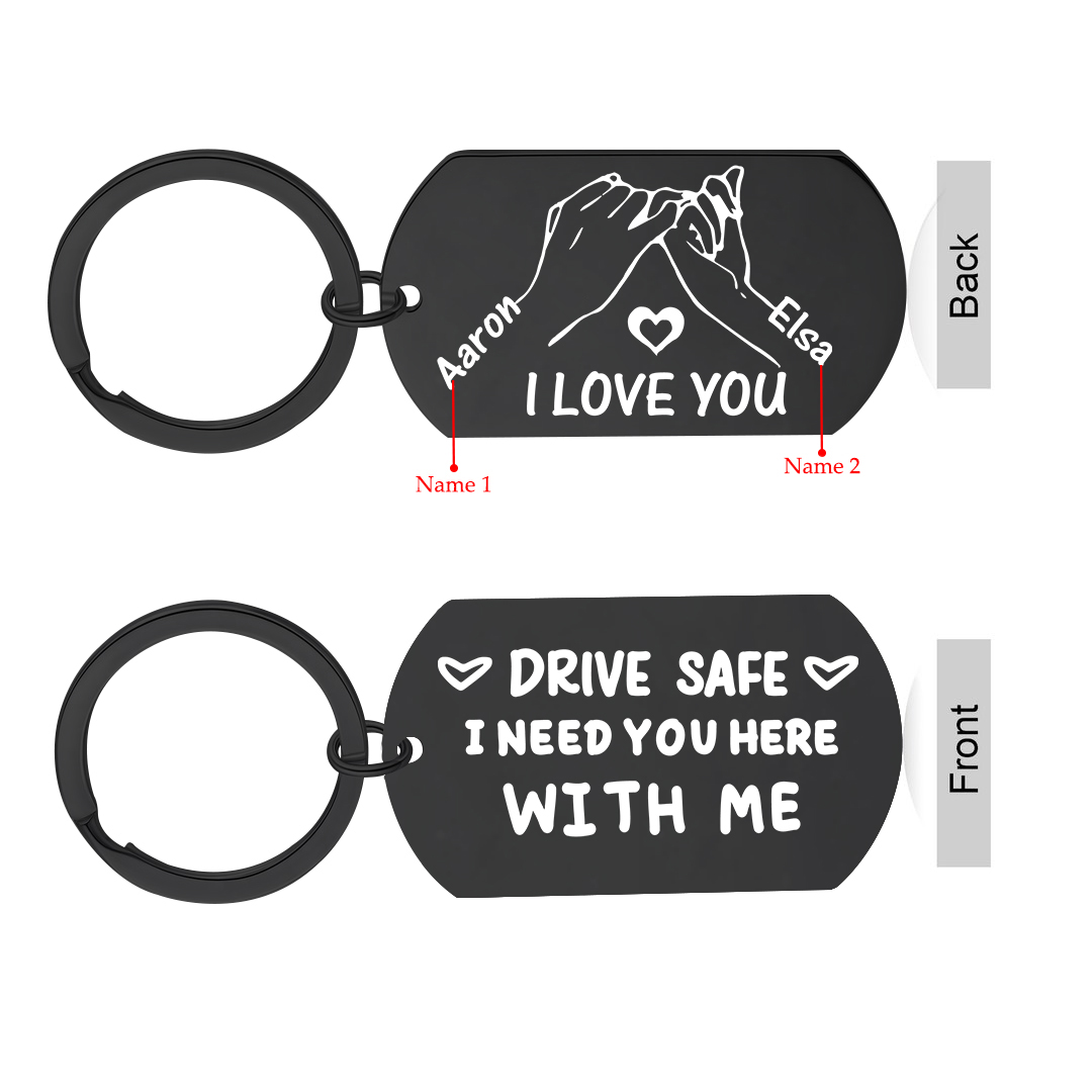 Keywords: personalized keychain, name engraving, gift for couples, safety message, sentimental gift, everyday accessory, car keychain, gift for him, gift for her