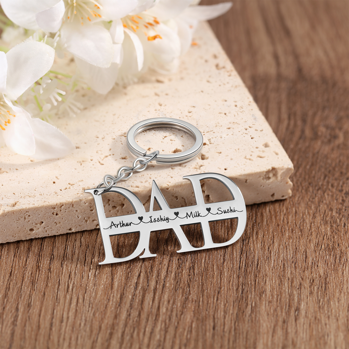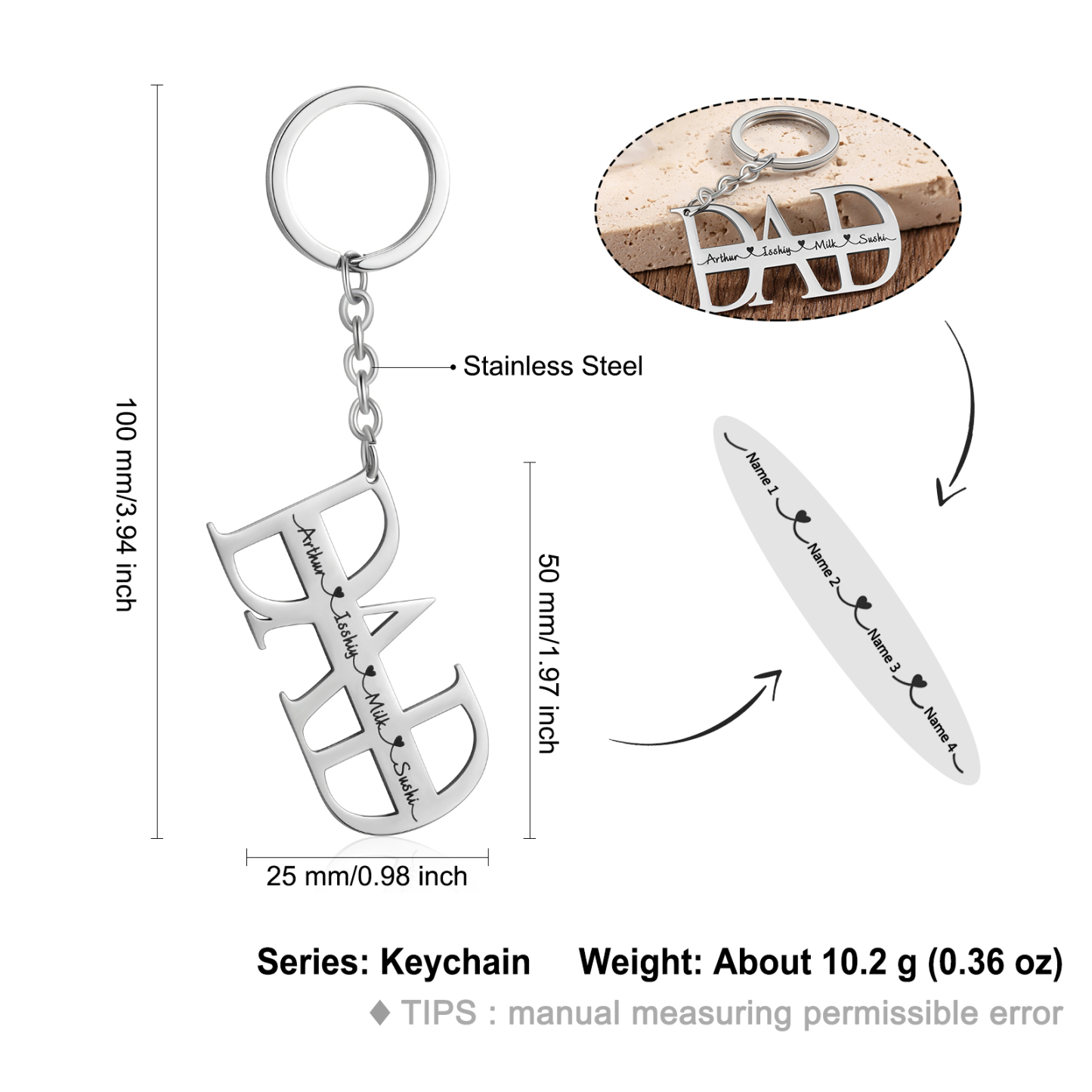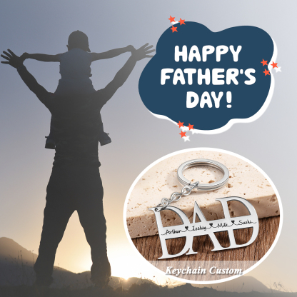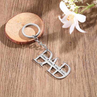 Personalized Keychain Engraved 4 Names Keychain Gifts For Father