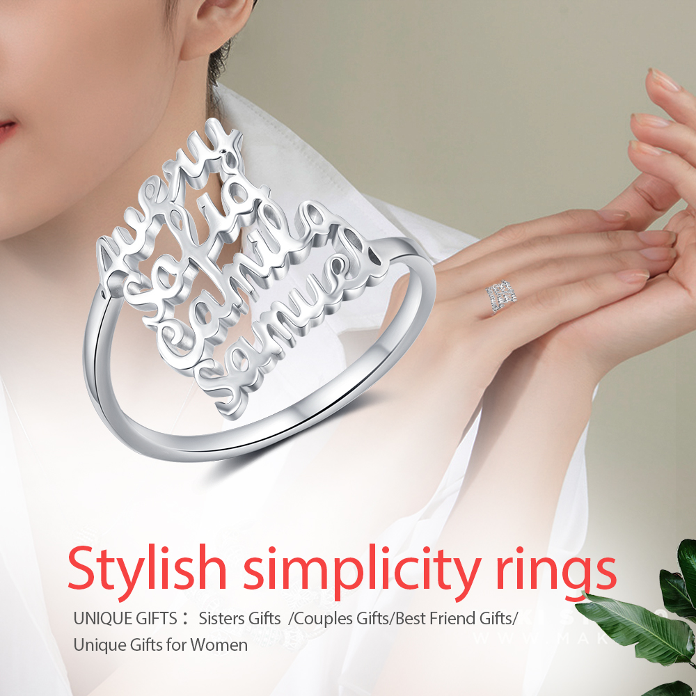 Personalized Name Ring Custom 4 Names Ring Gifts for Women