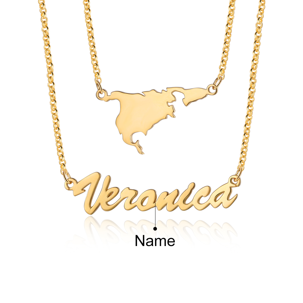 Personalized Map Necklace Custom 1 Name Necklace Gift For Women
