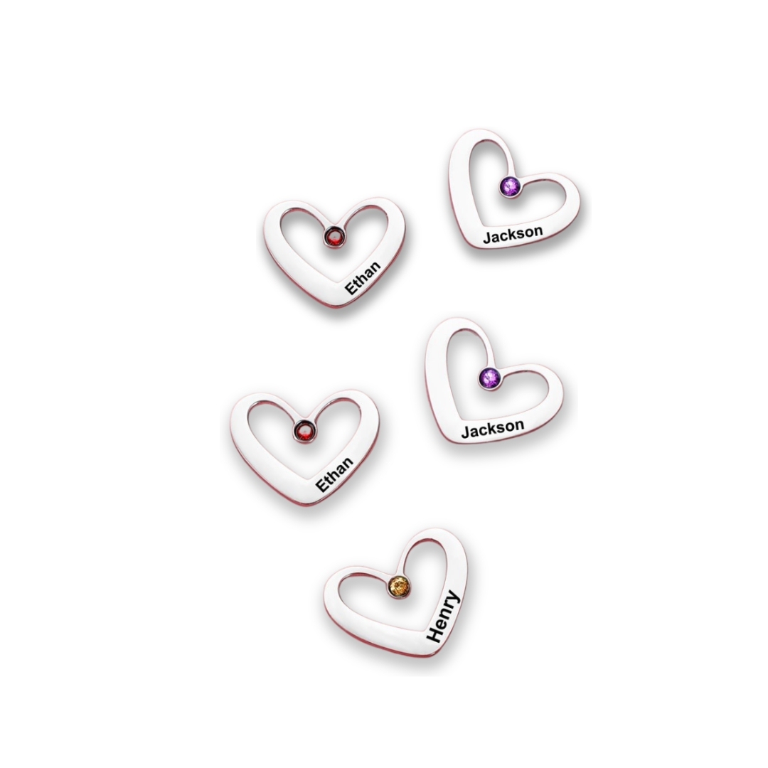 Customized Heart Charms With 1 Birthstone and Name