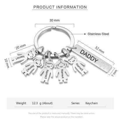 Personalized Kids Charm Keychain Engraved 5 Names Key Chain Gifts For Dad