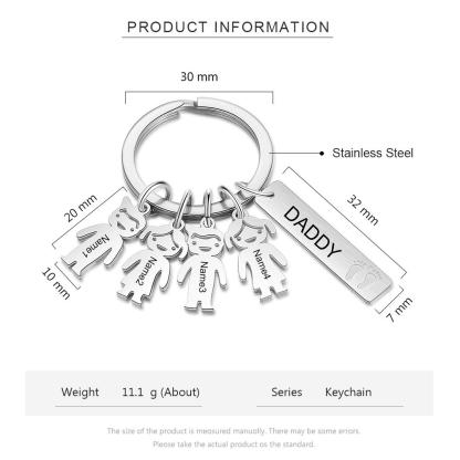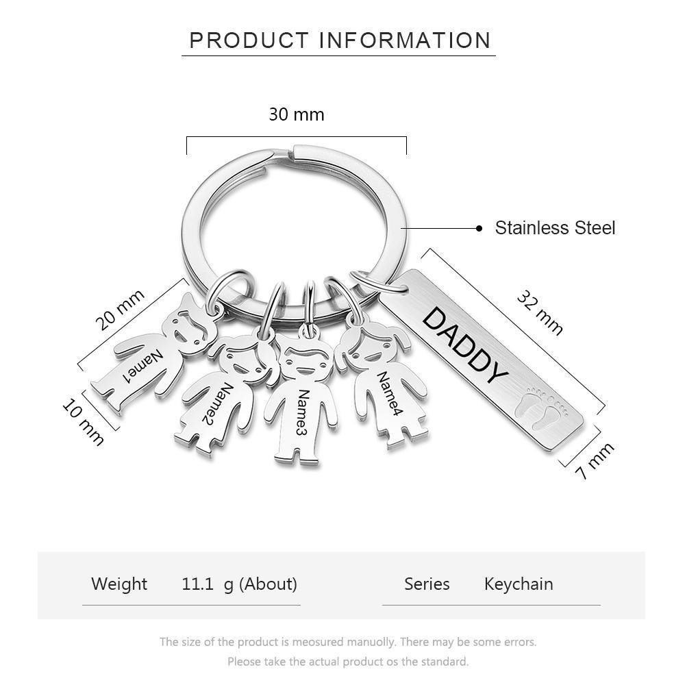 Personalized Kids Charm Keychain Engraved 4 Names Keychain Gifts For Dad