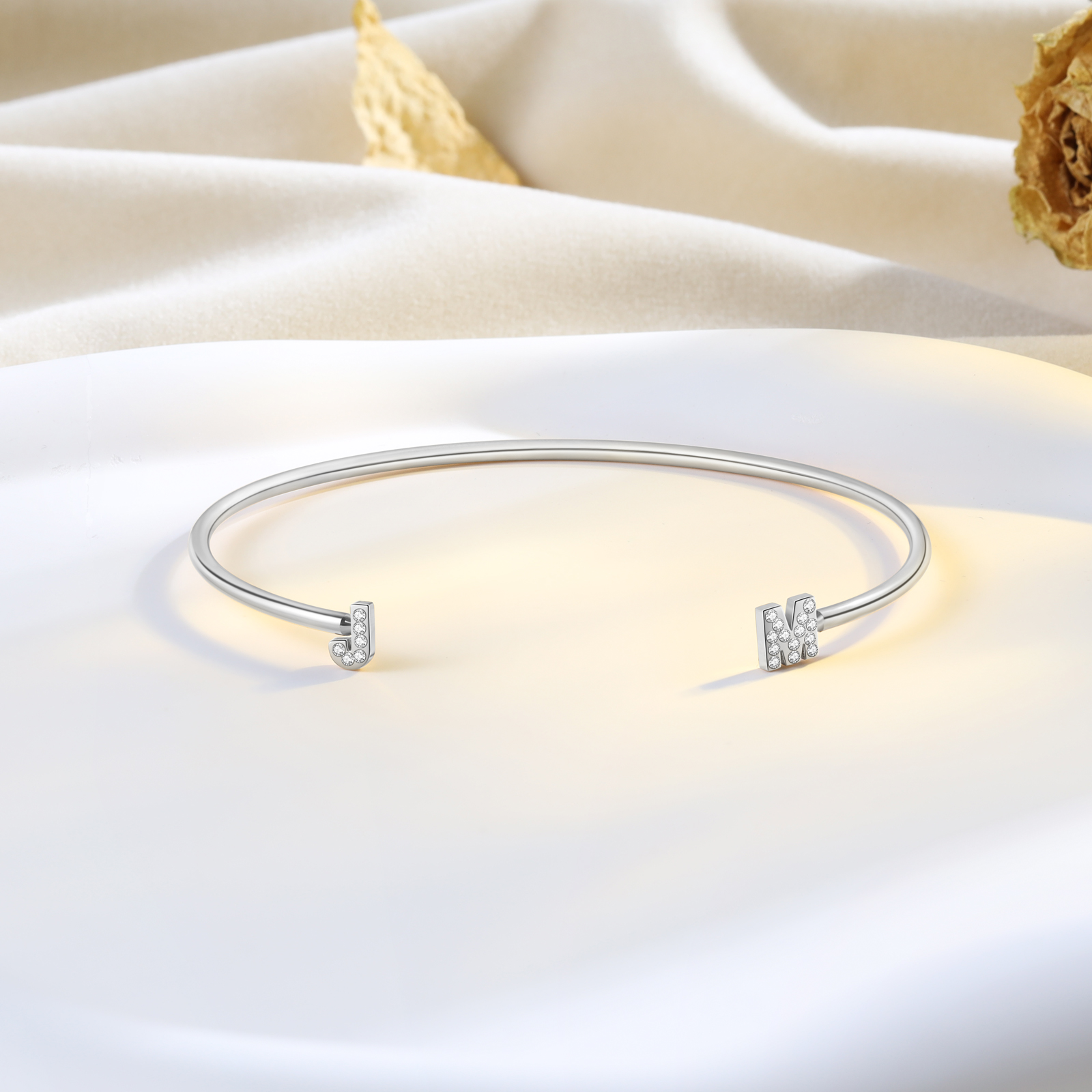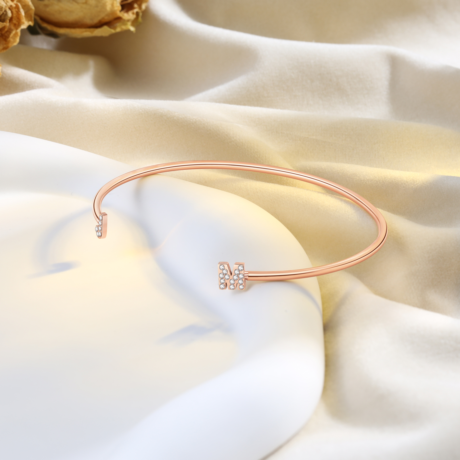 Customized Letter Bangle Bracelet Custom Letter Adjustable Bangle Birthday Gifts For Her