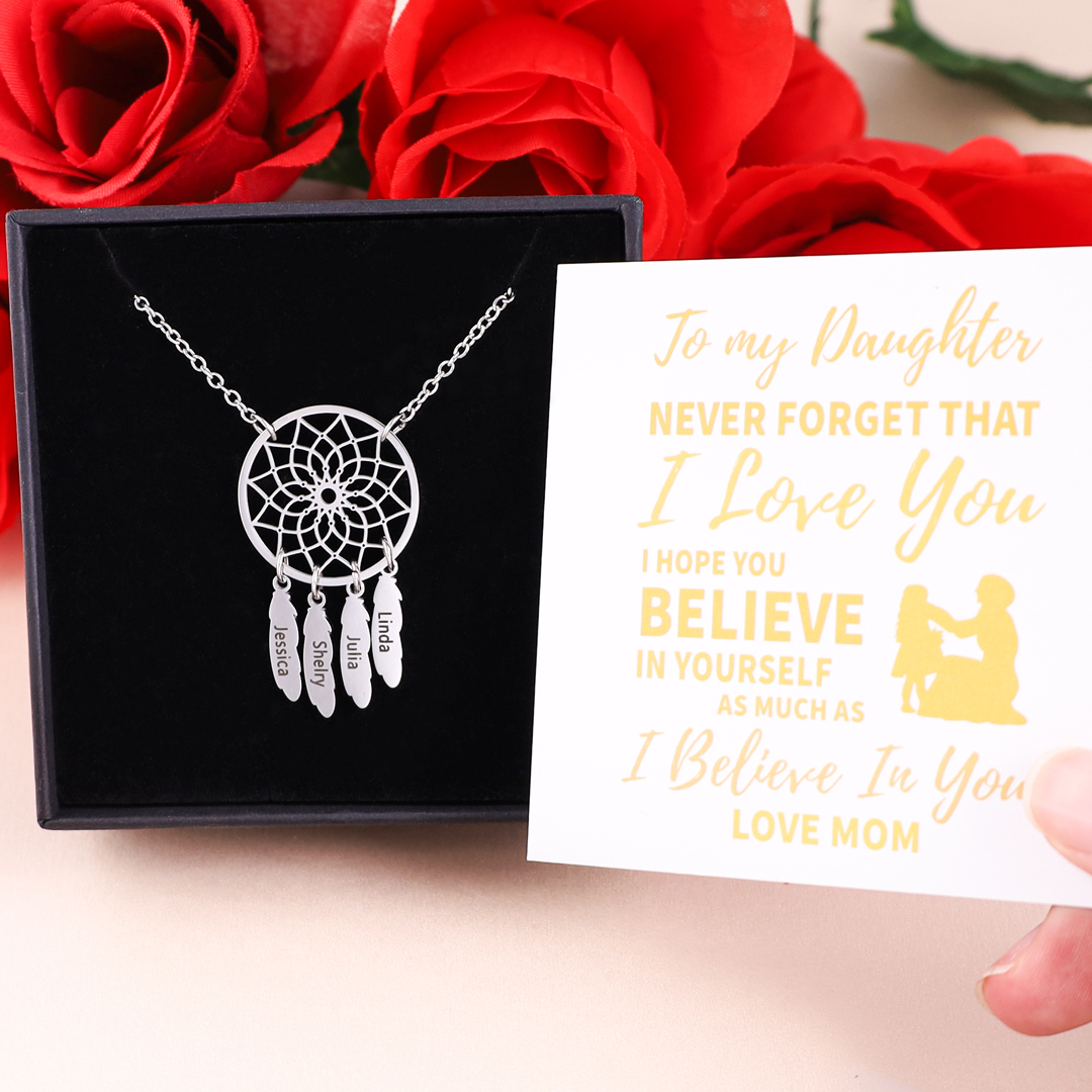 A Set of Customized 4 names Retro Dream Catcher Pendant Necklace