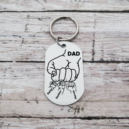 Dad Fist Bump Personalized Photo Keychain Engrave 3 Names Father's Day Gifts