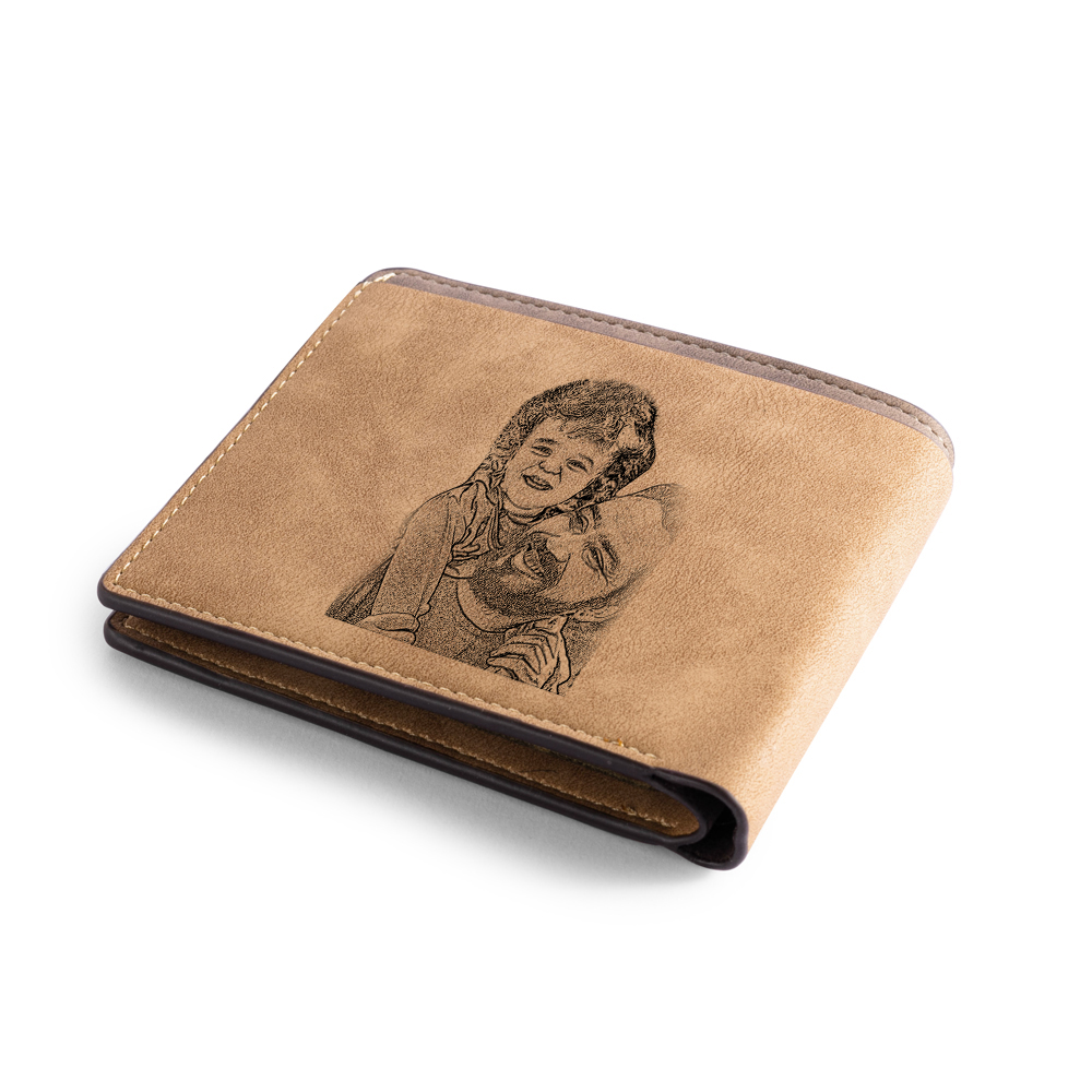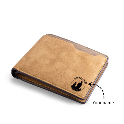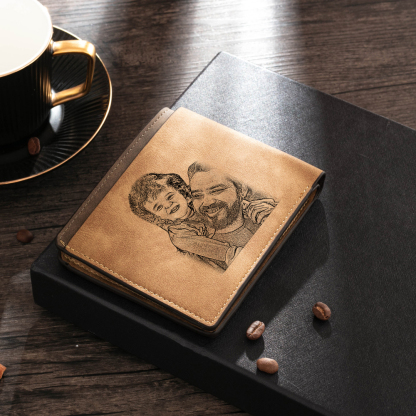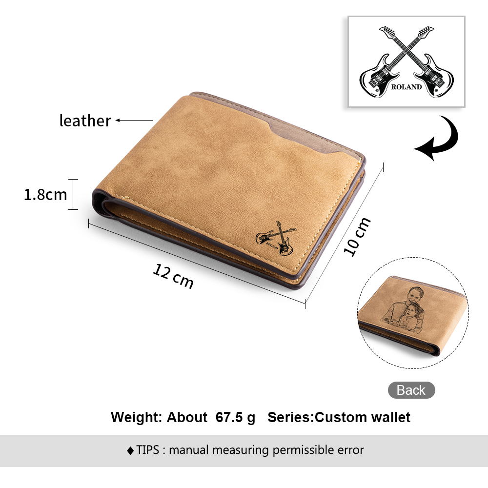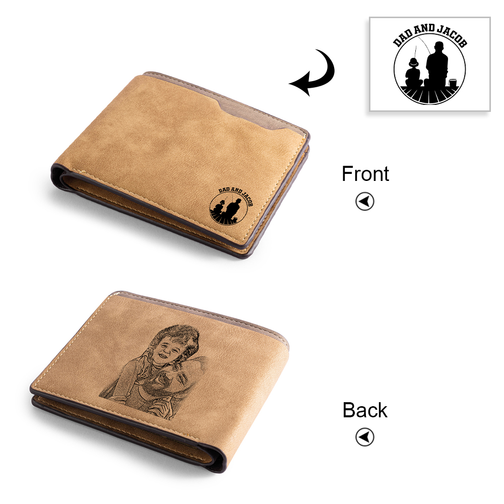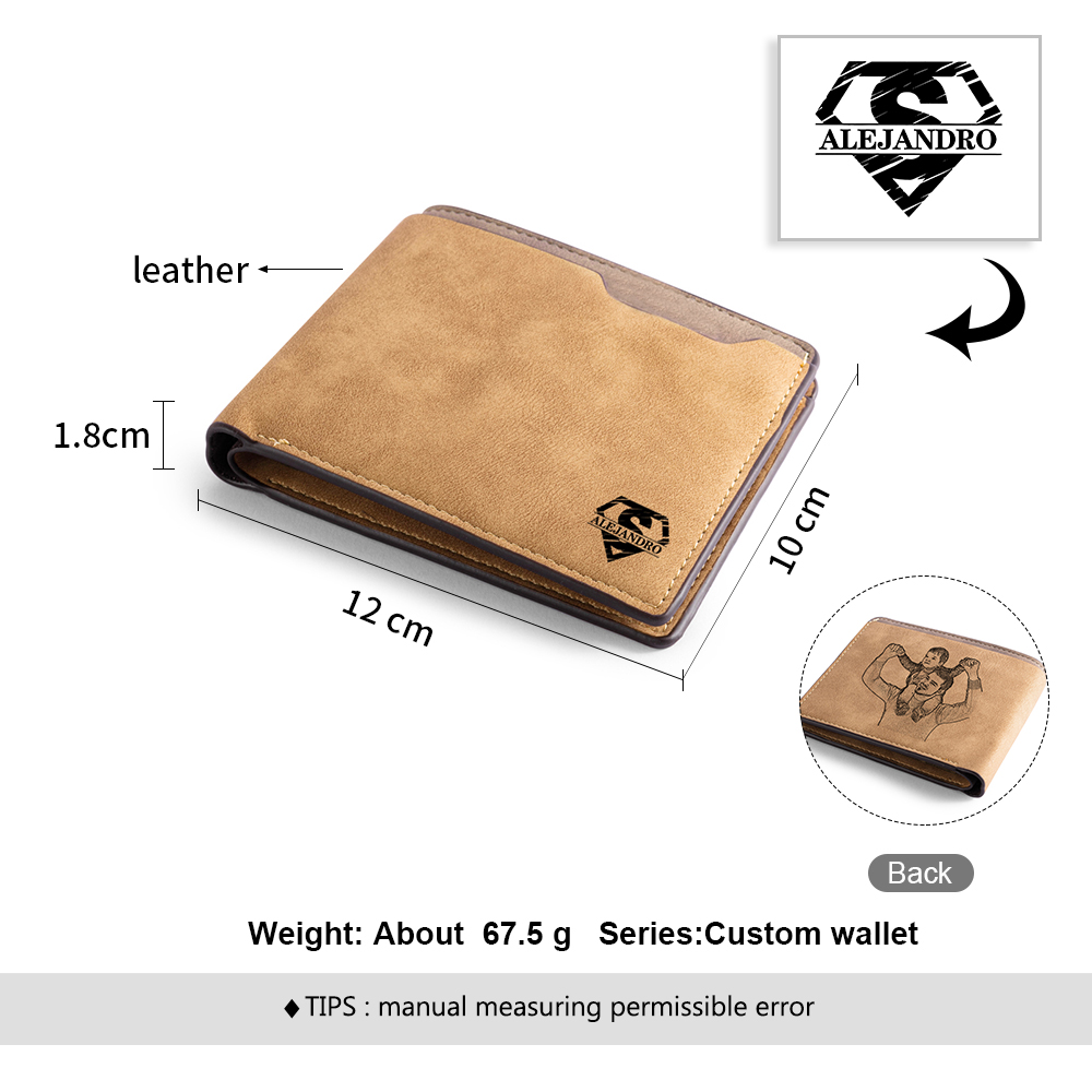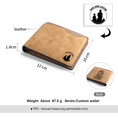 Brown Personalized Leather Wallet Engraved Photo Short Wallet Folding Wallet For Dad