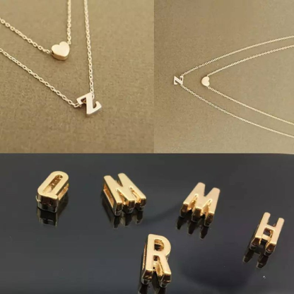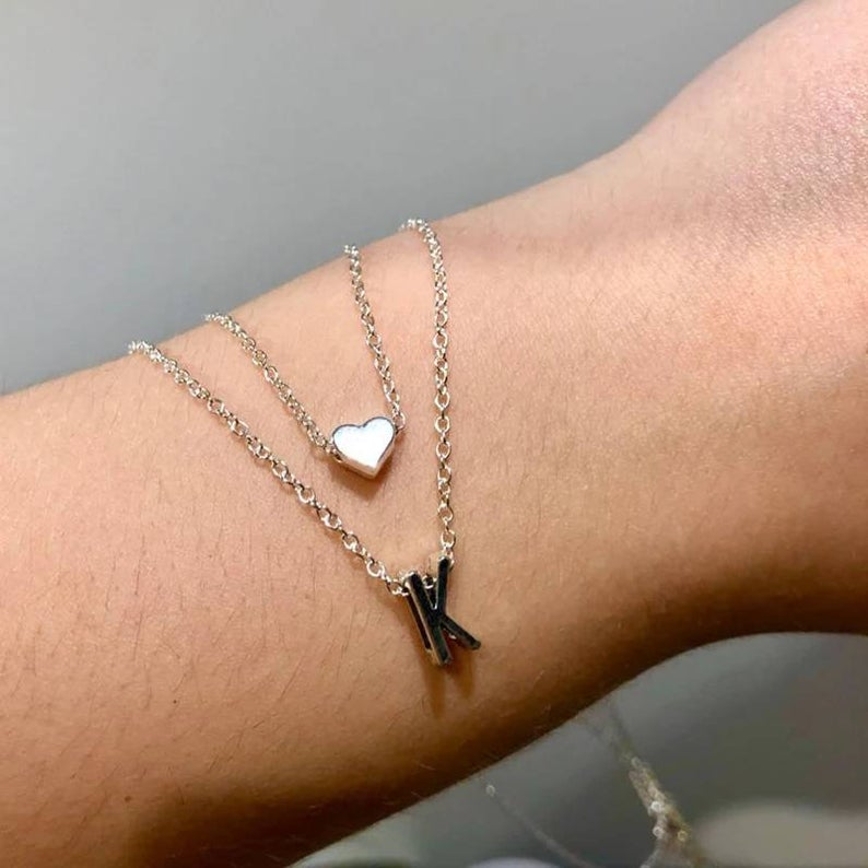 Double Layered Heart Necklace-Personalized Letter Necklace Gifts for her