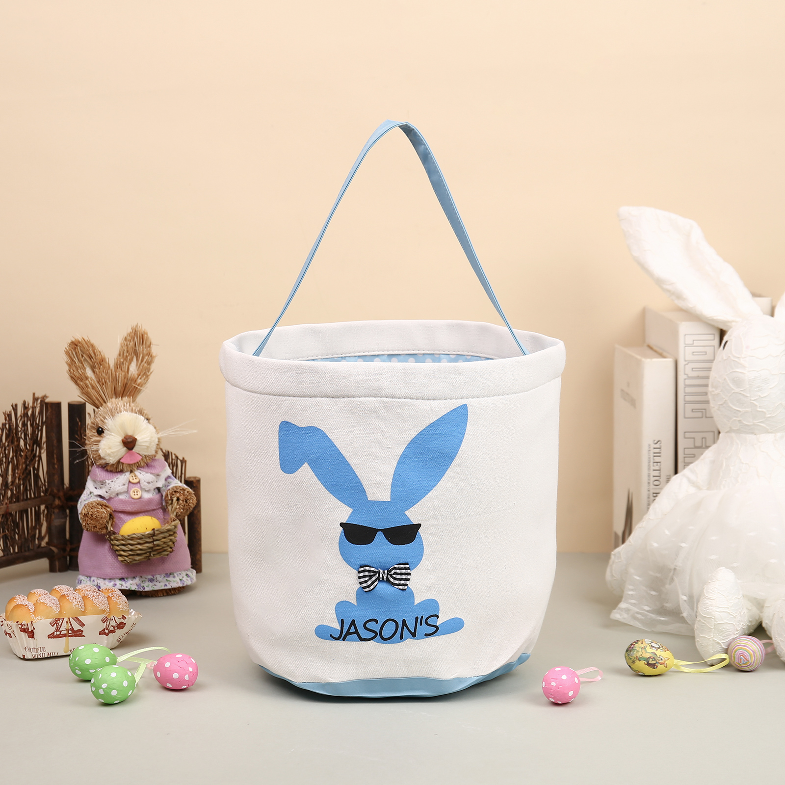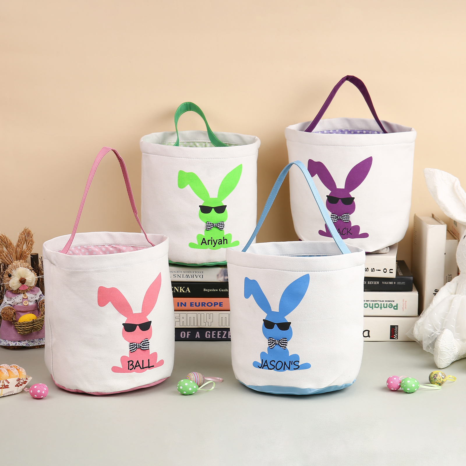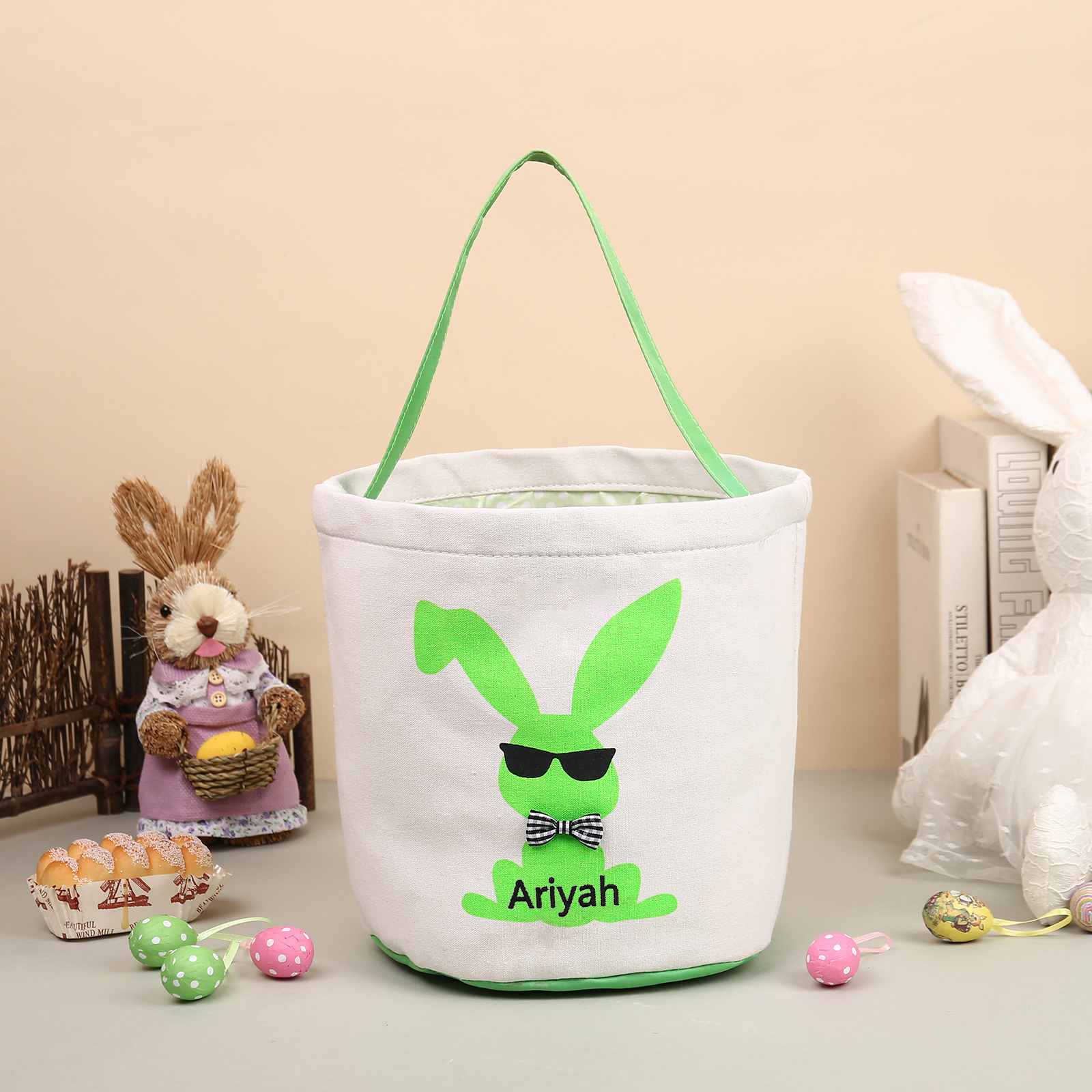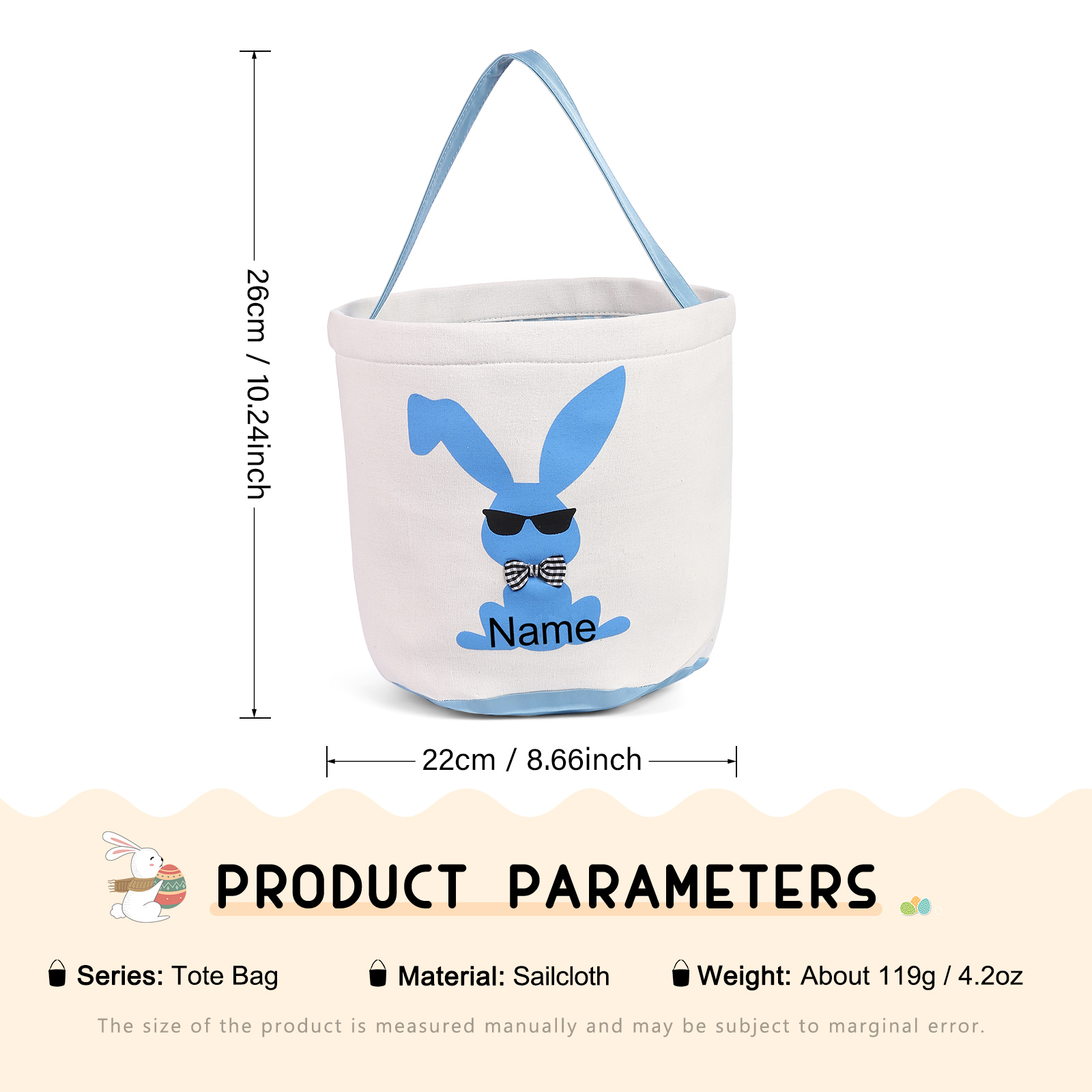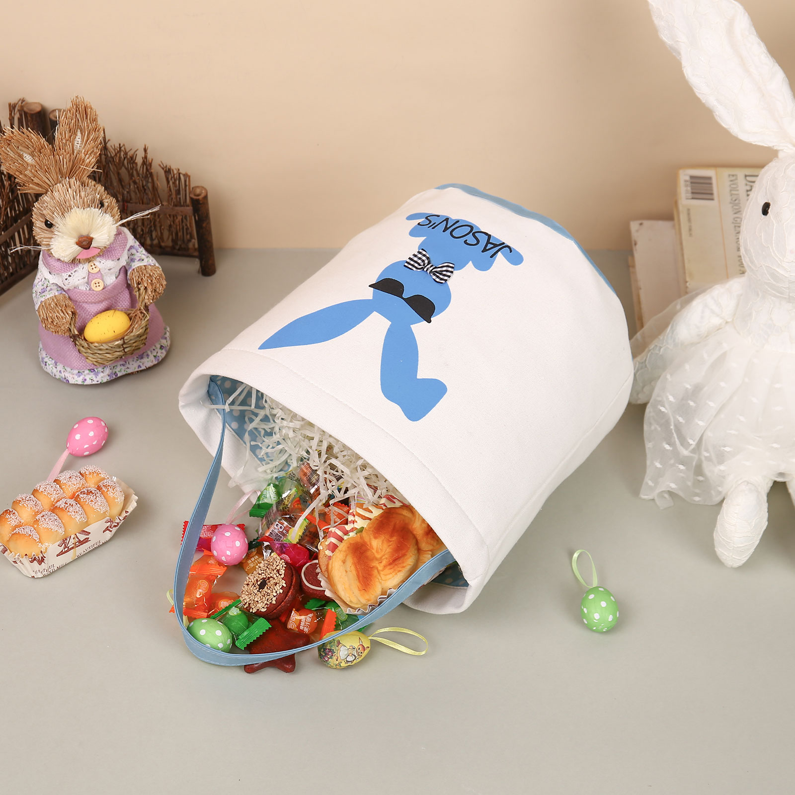 Easter Bunny Tote Bag Personalized Name Bucket Bag White Basket Gifts For Kids