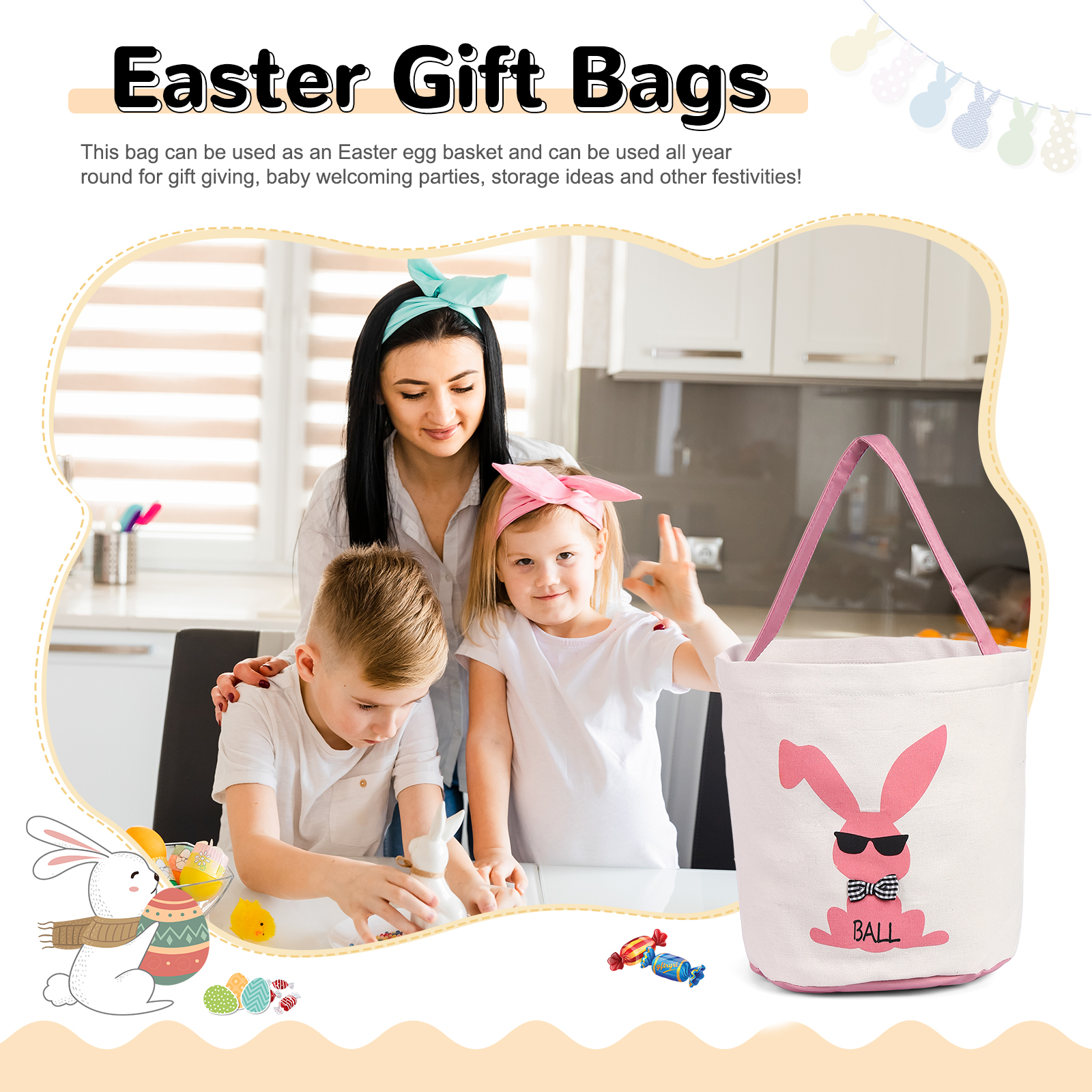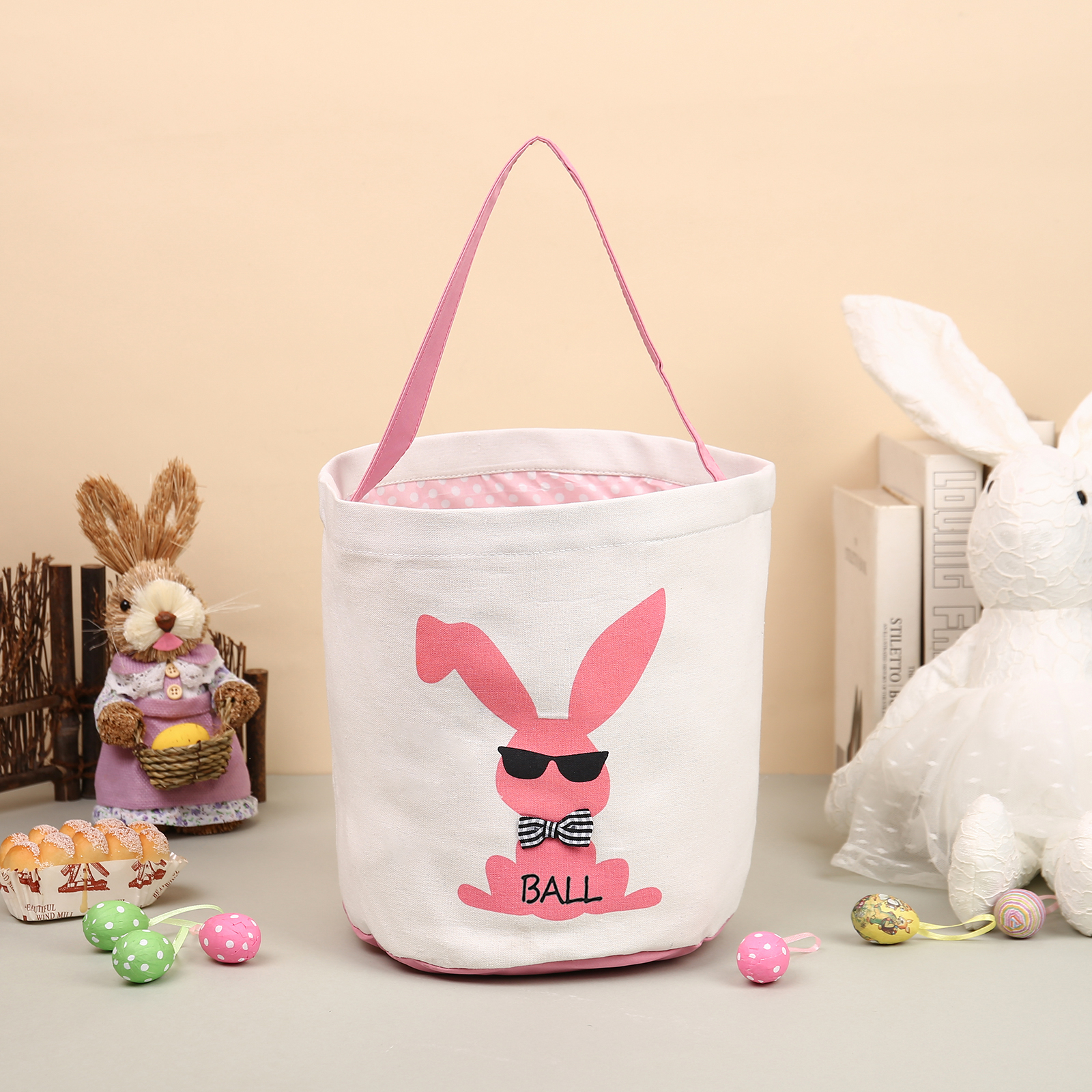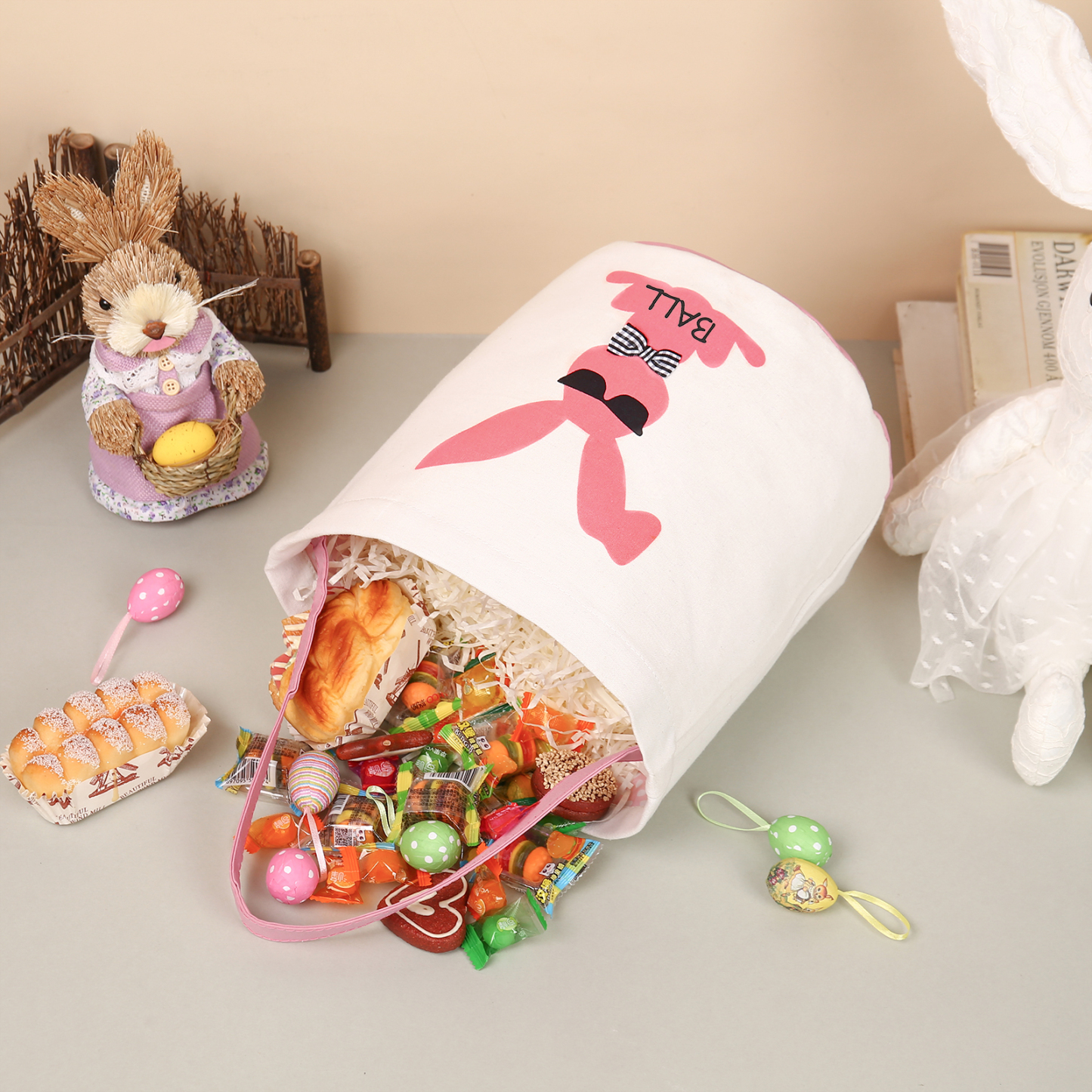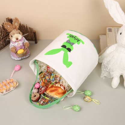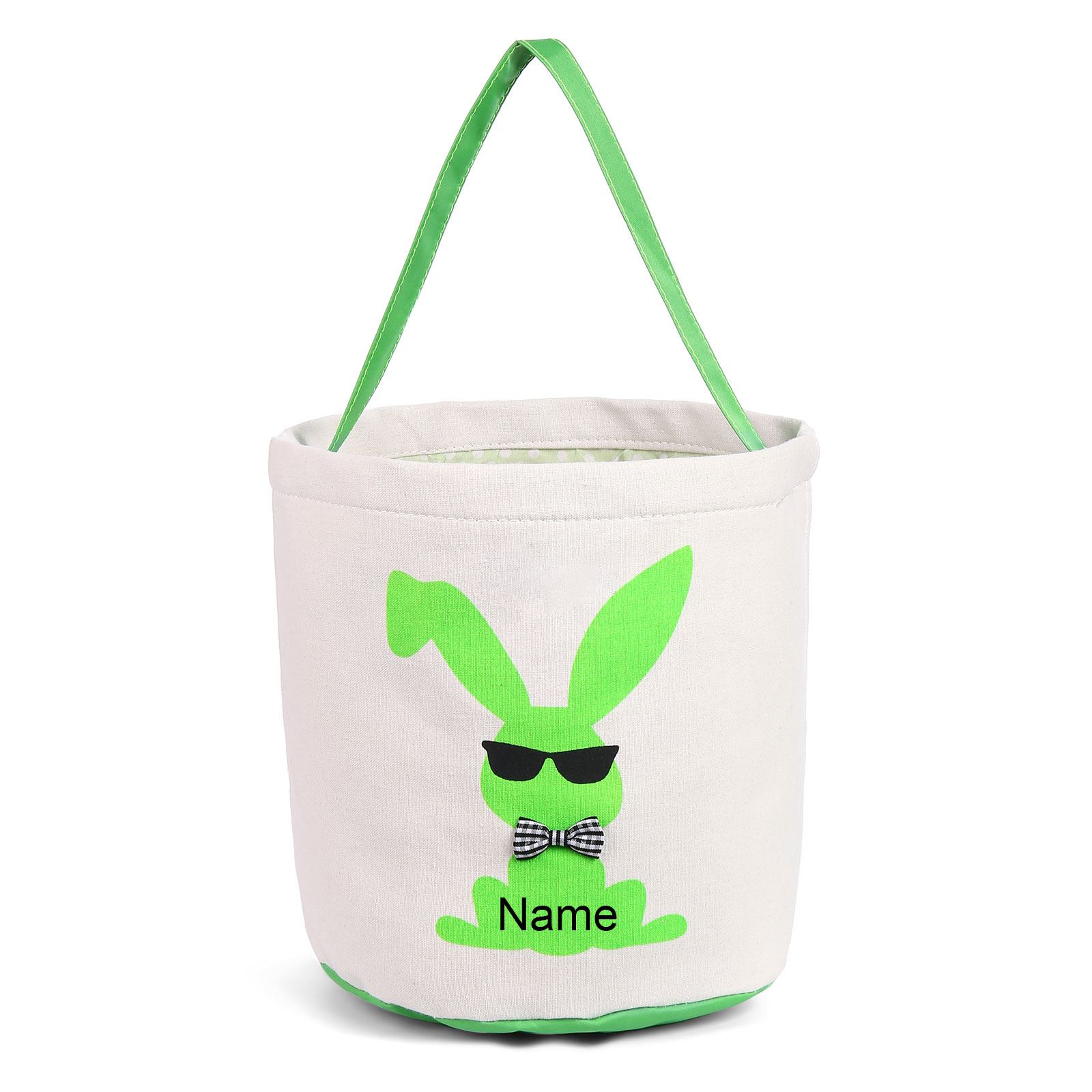 Easter Bunny Tote Bag Personalized Name Bucket Bag White Basket Gifts For Kids