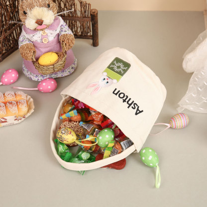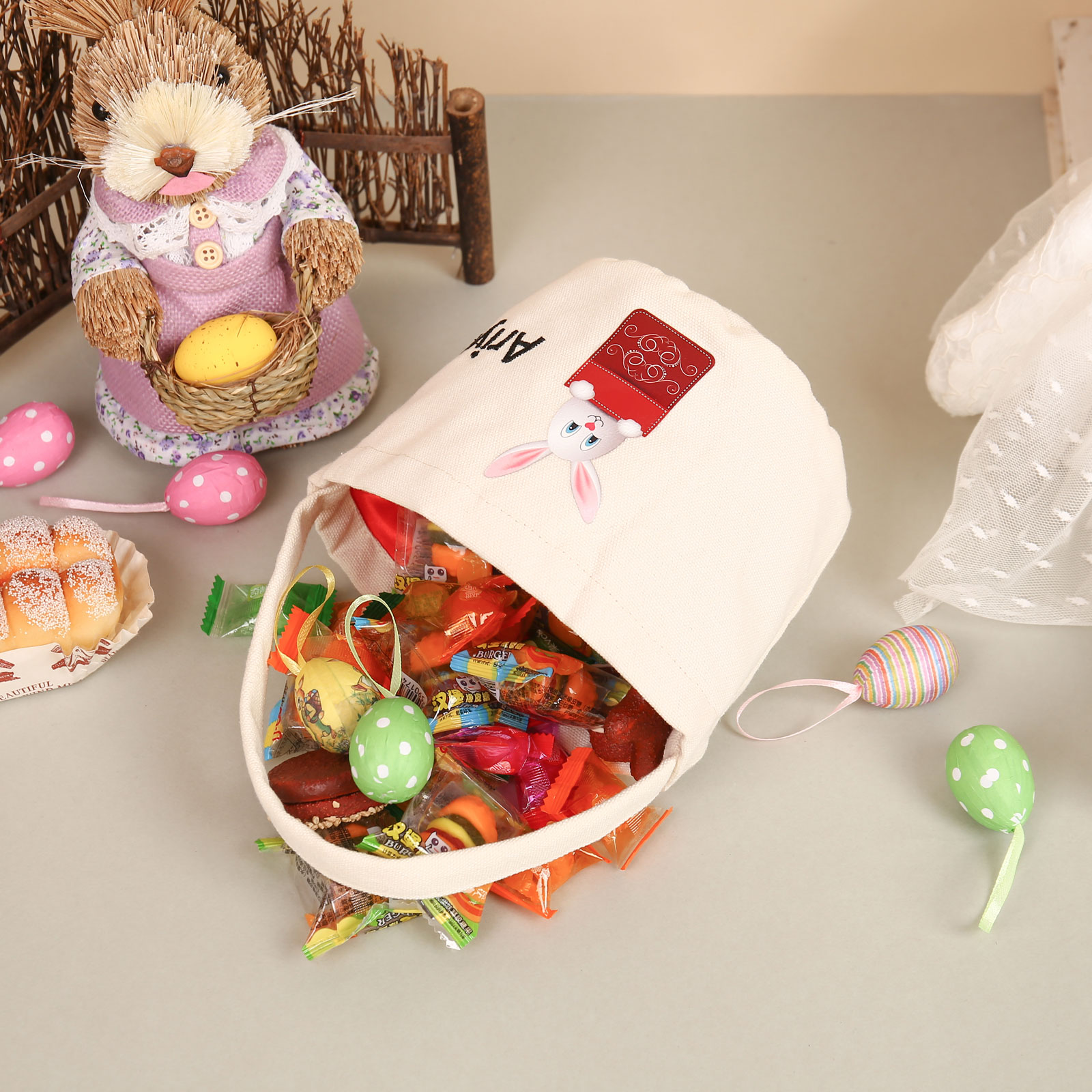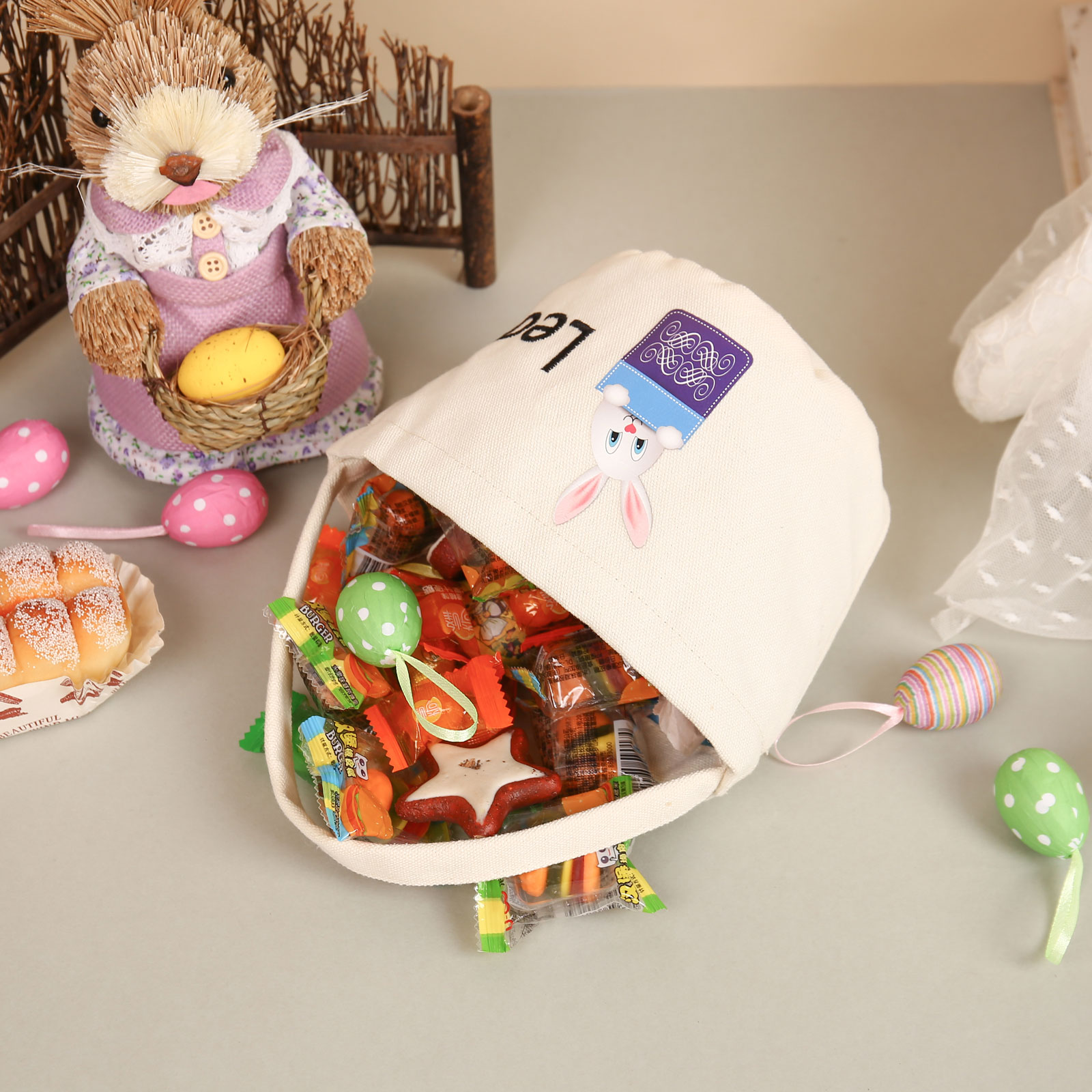 Easter Bunny Tote Bag Personalized Name Bucket Bag White Basket Gifts For Kids