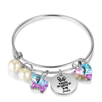 Easter Gifts Personalized Bunny Bangle Bracelet With Name Peals Crystals Bangle Gifts For Her