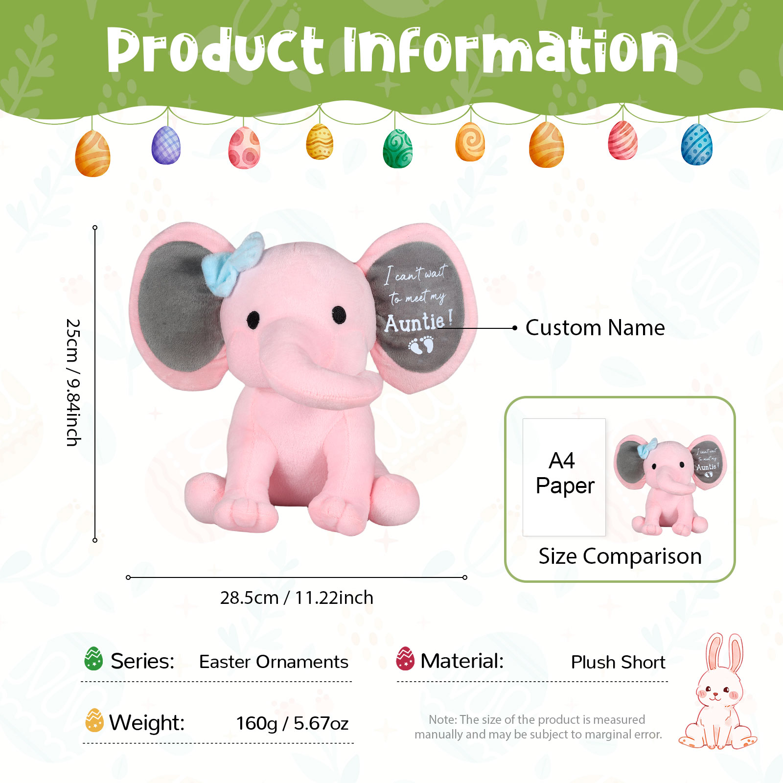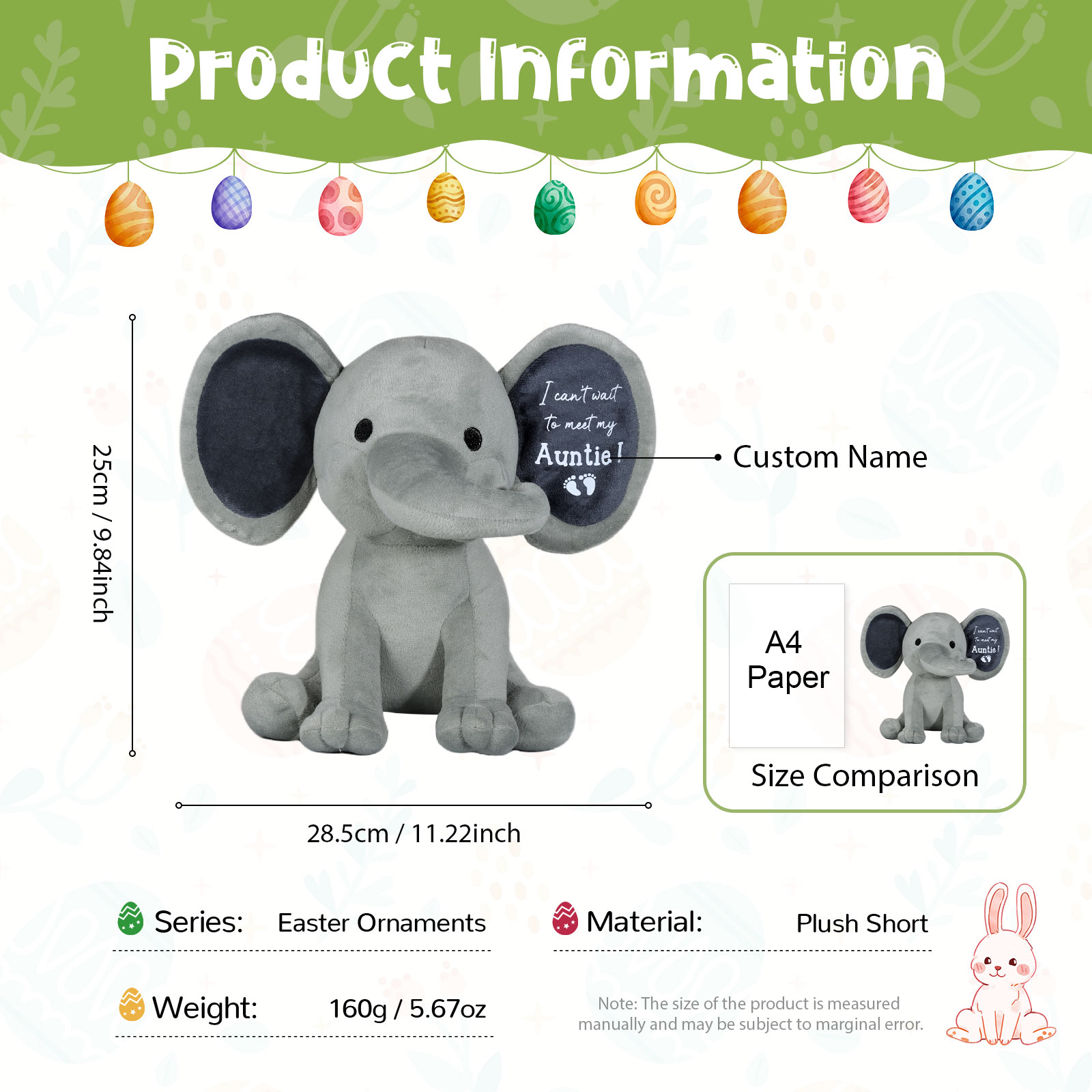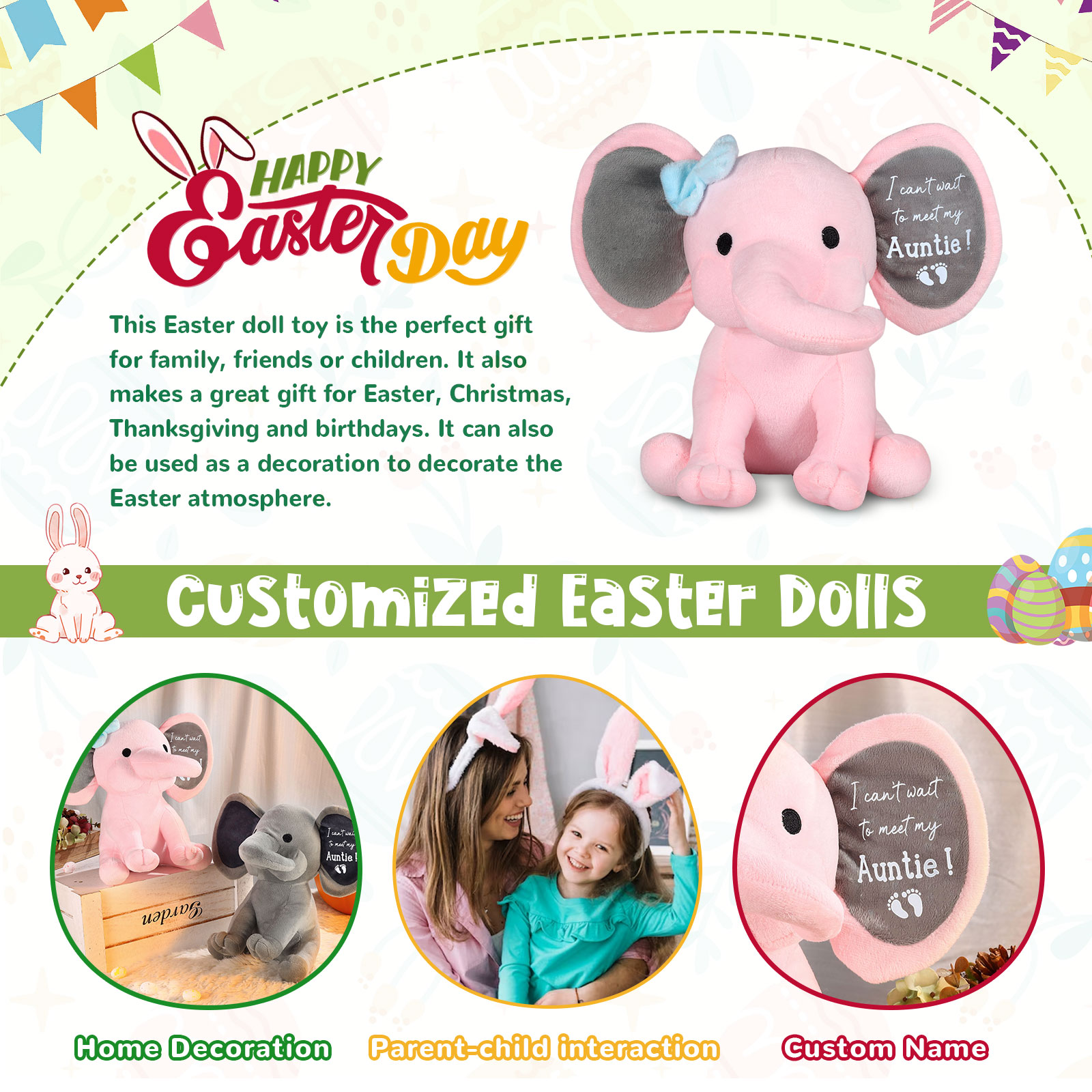 Easter Ornament Personalized Name Plush Short Elephant Home Decoration Gift For Kids