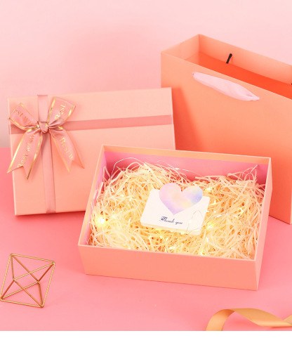 Make your gifts even more special with our luxurious pink gift box, designed for wallets, ornaments, and other small treasures. This gift box, featuring a charming blue ribbon and a cream top, adds elegance and thoughtfulness to any gift presentation. Crafted from durable, high-quality paper, it not only ensures the safety of its contents but also transforms every unboxing into a memorable experience. A perfect solution for gifting with class and care, this box embodies the essence of thoughtful giving.