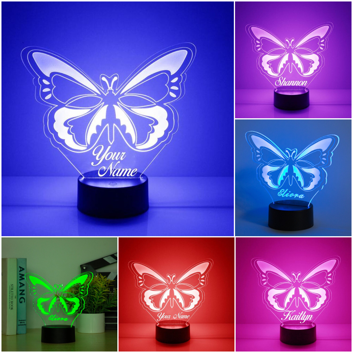 Engraved 1 Names Butterfly Night Light 7 colour Discolored Lamp Custom Name Home Decoration Gifts