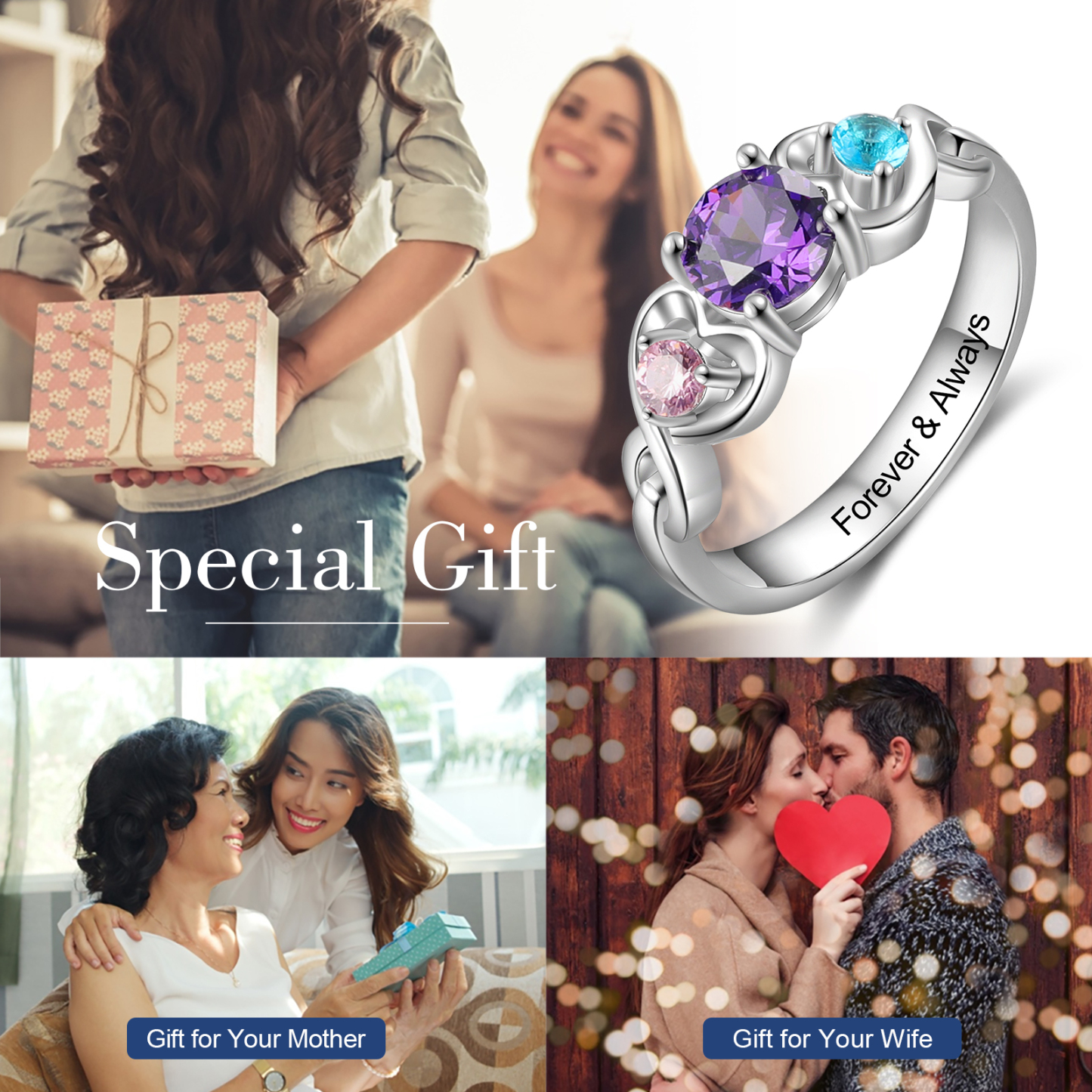 Personalized Mother Ring With 3 Birthstones Engraved Names Ring Gift For Women
