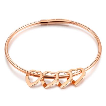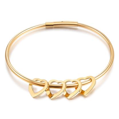 Personalized Love Bracelet with 4 Heart Charms Engraved Name Bangle Bracelet for Mother