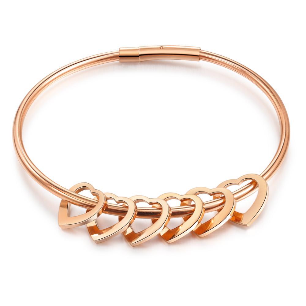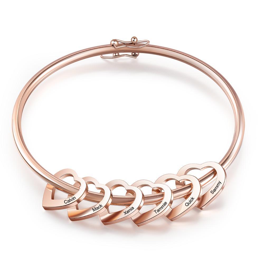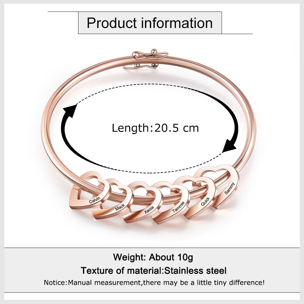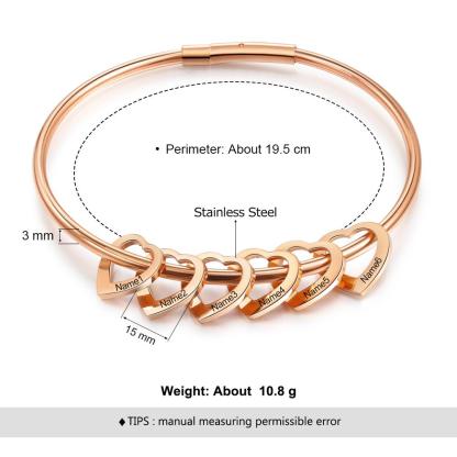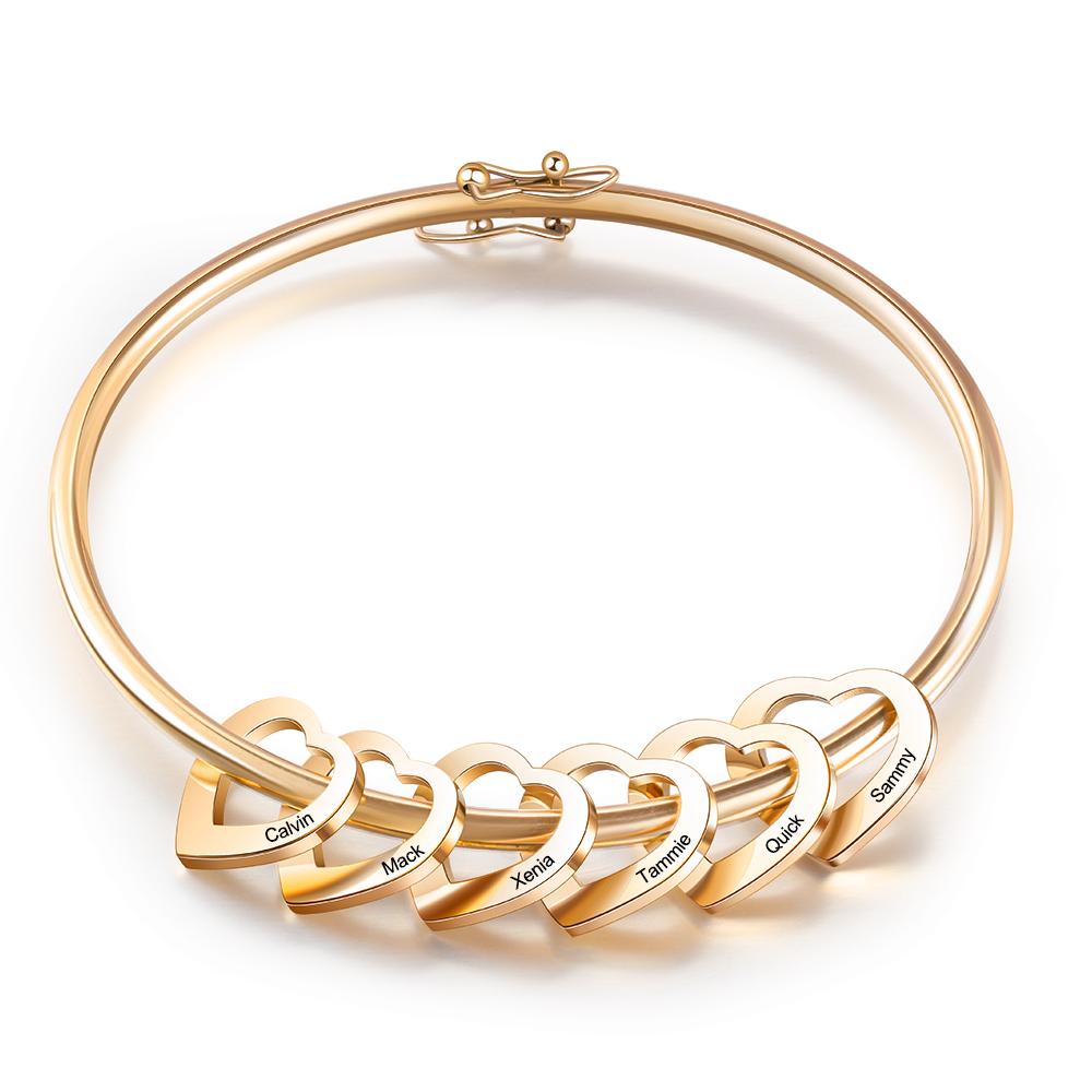 Personalized Love Bracelet with 6 Heart Charms Engraved 6 Names Bangle Bracelet for Her