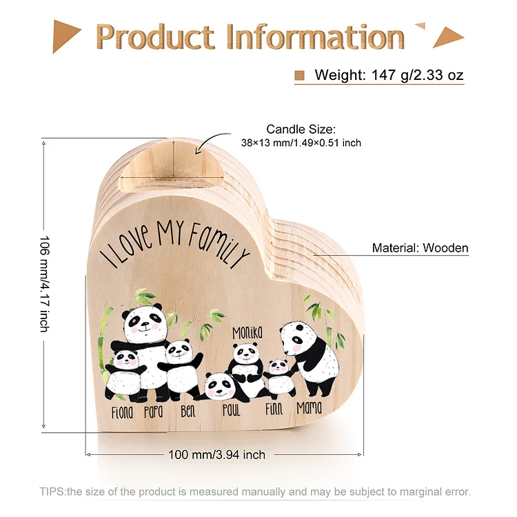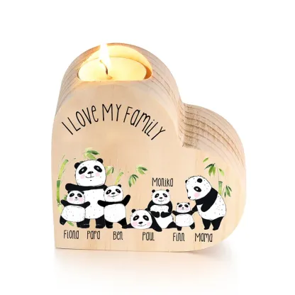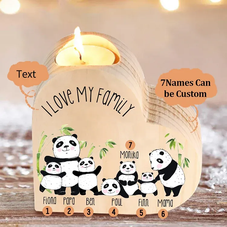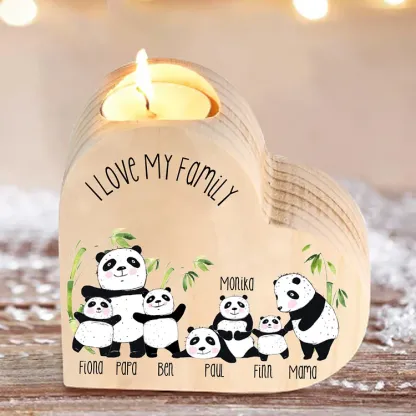 Family Panda Heart Candle Holder Personalized Wooden Candlestick Custom 7 Names