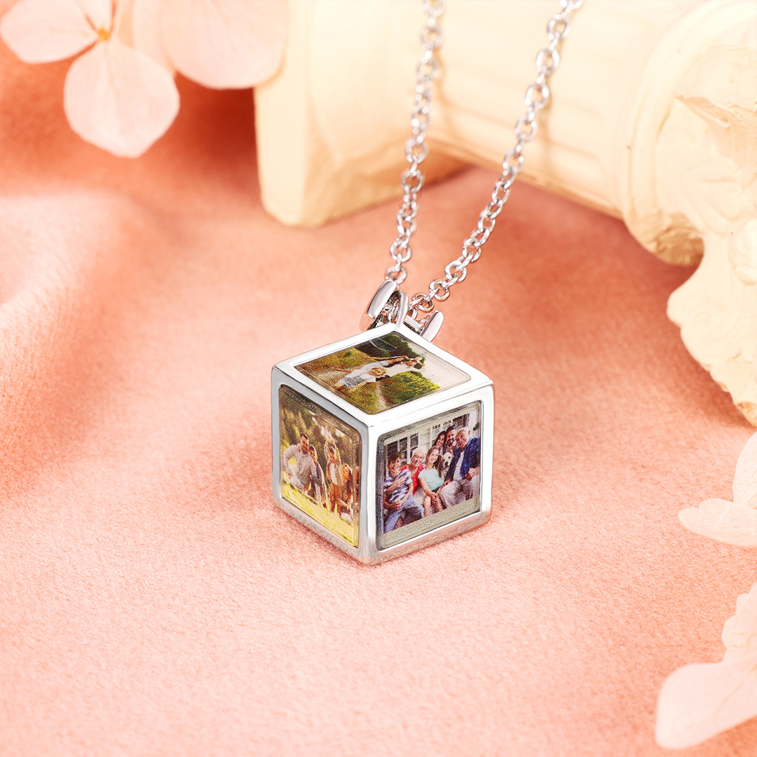Family Photo Rubik's Cube Necklace Customized 6 Photos Necklace Gifts For Her