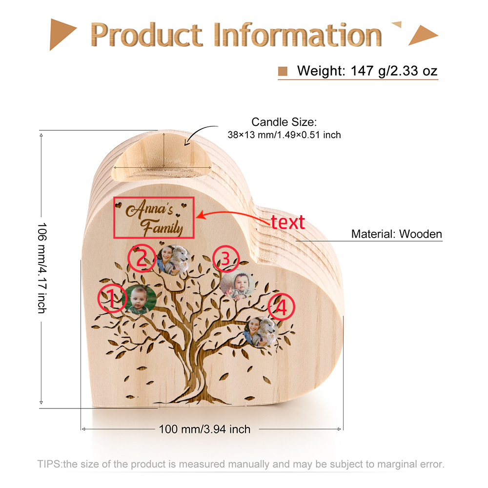 Family Photo Wooden Heart Candle Holder Custom 4 Photos Family Tree Candlesticks
