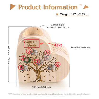 Family Photo Wooden Heart Candle Holder Custom 6 Photos Family Tree Candlesticks