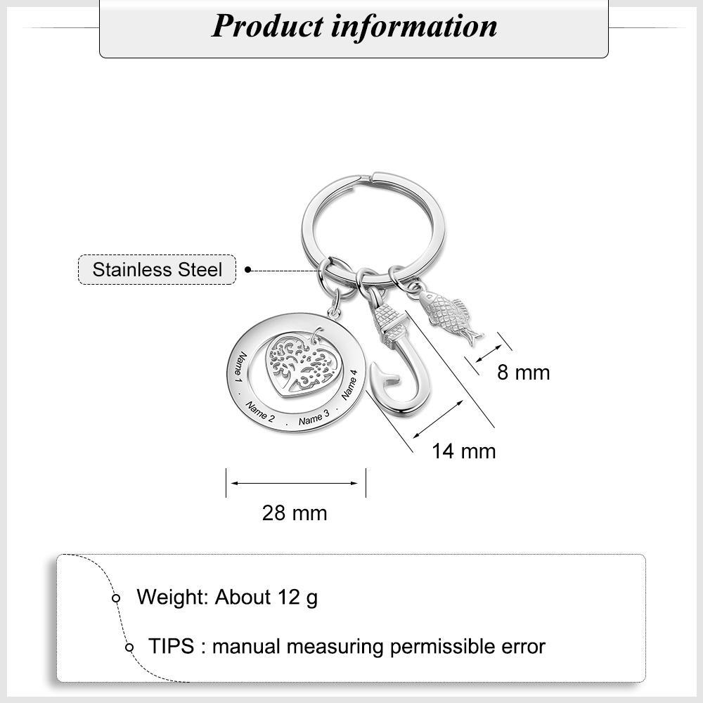 Personalized Family Tree Keychain Engraved 4 Names Gifts For Mother