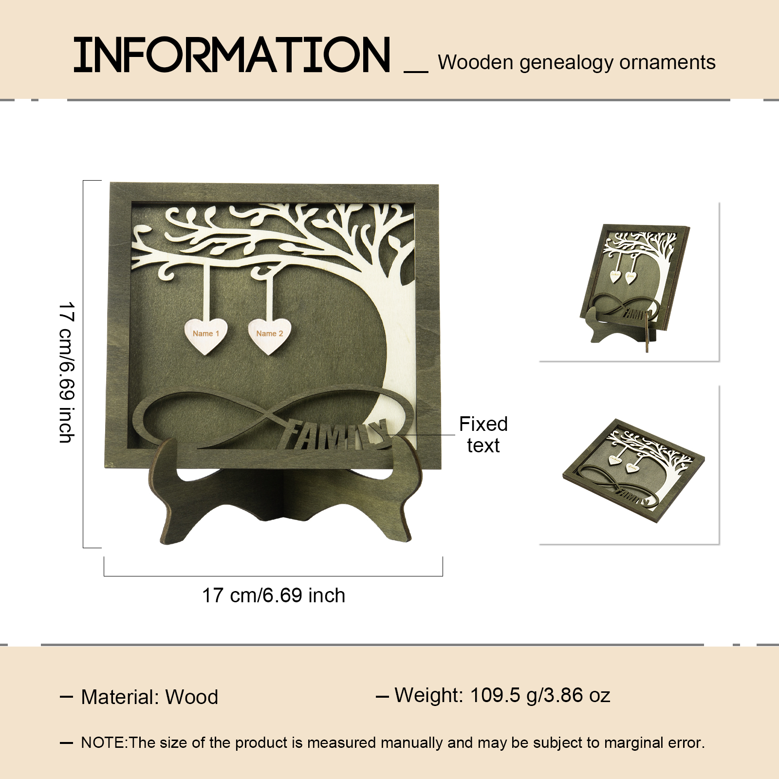 Custom Family Tree Sign with 2 Names Wooden Keepsake Gifts