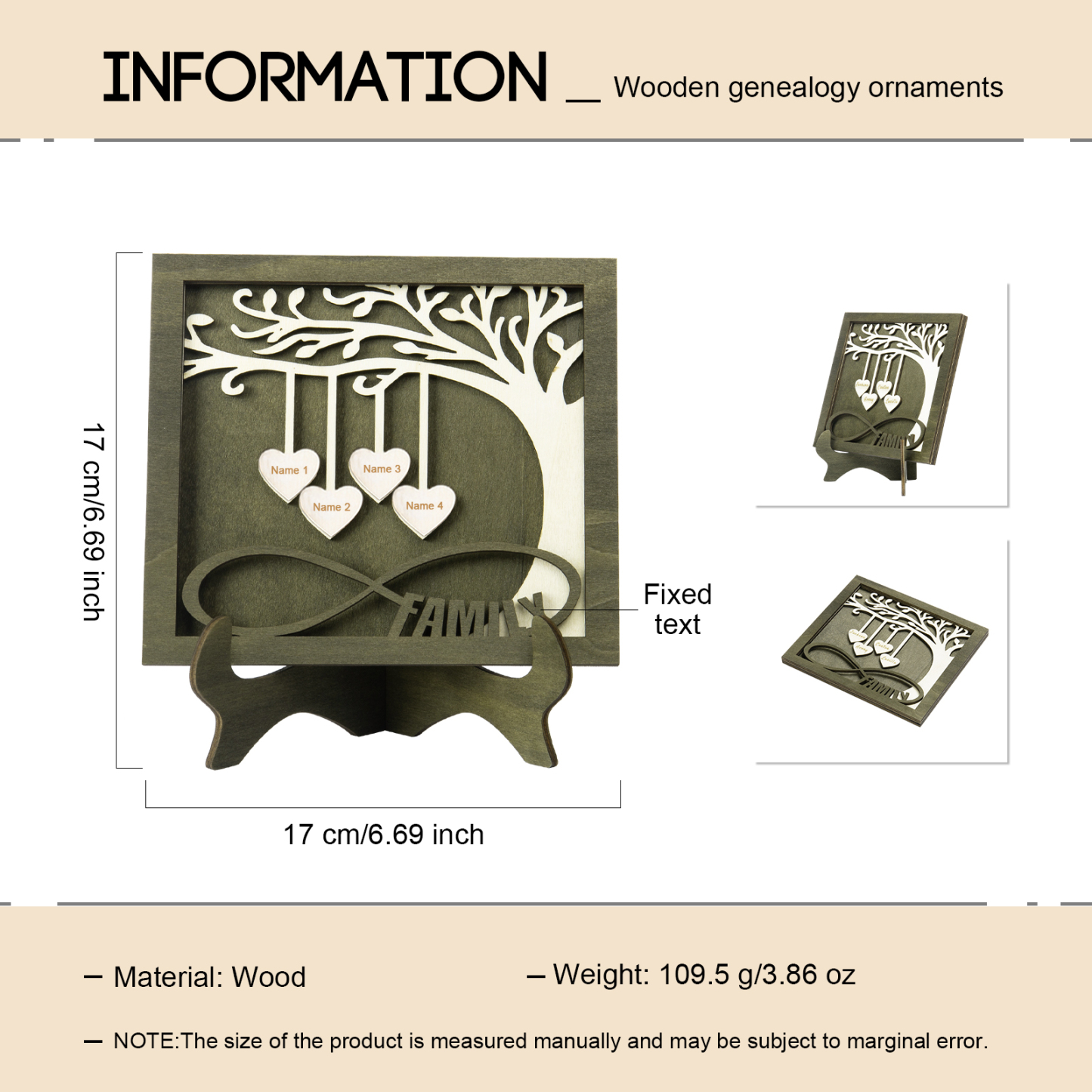 Custom Family Tree Sign with 4 Names Wooden Keepsake Gifts