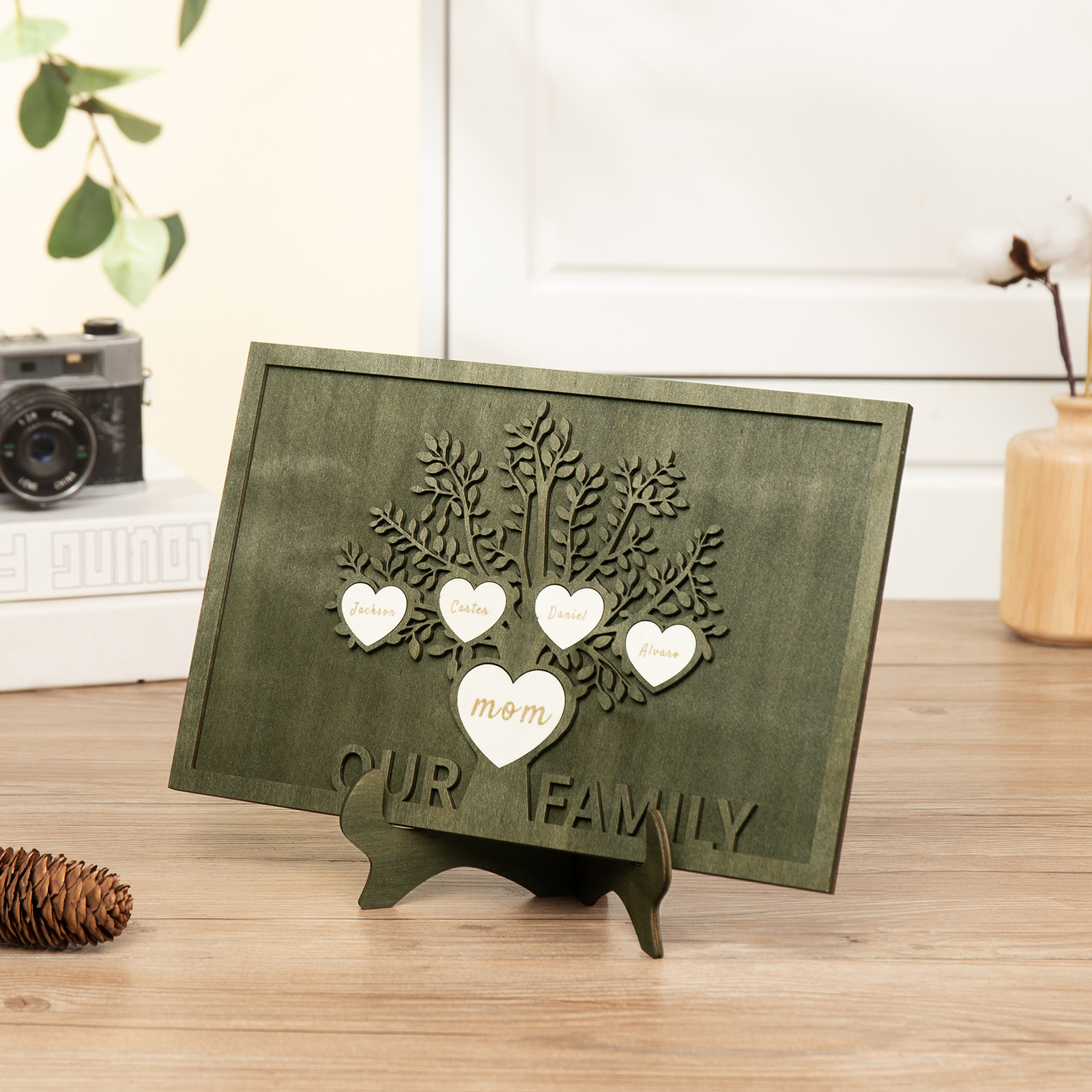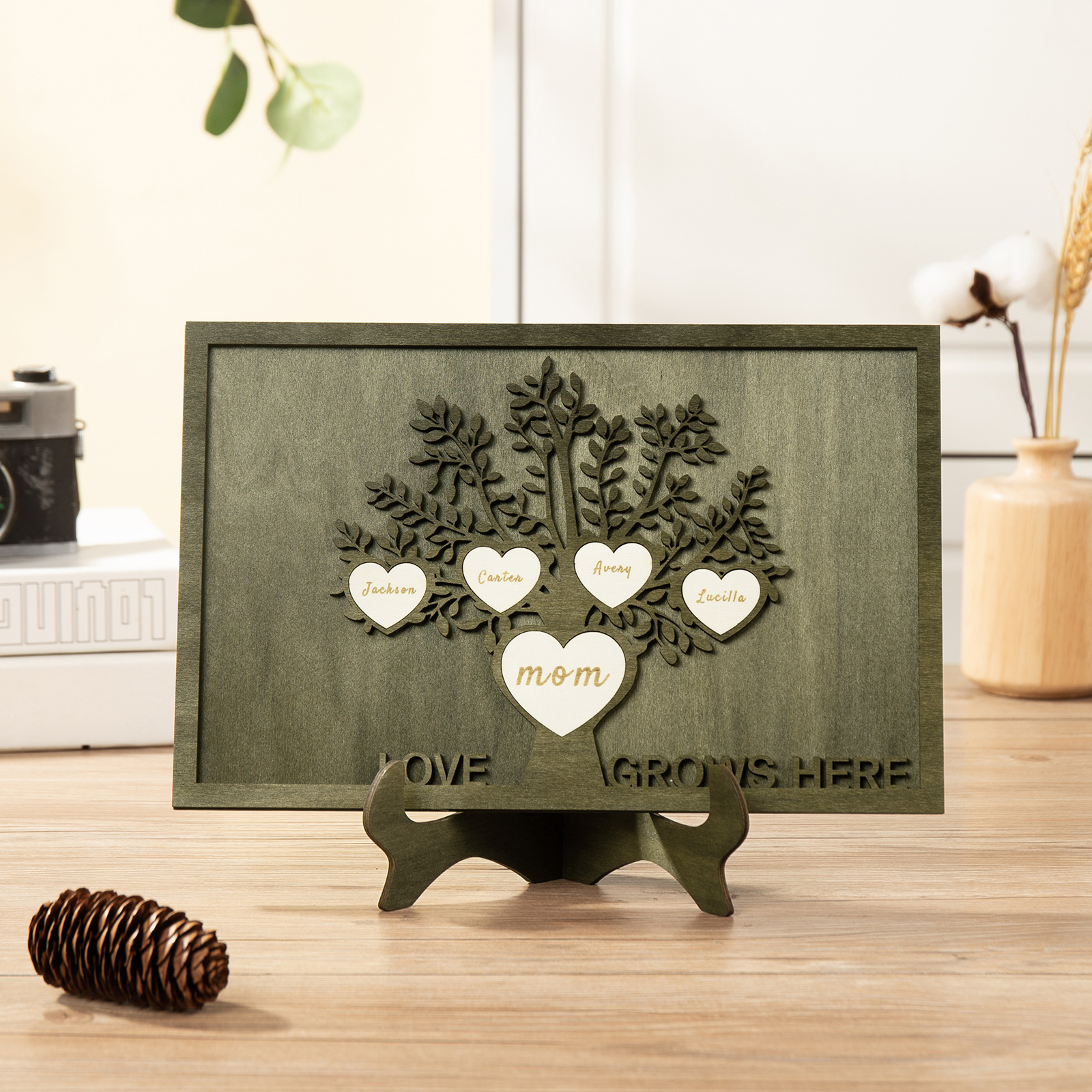 💗 This unique gift is personalized with your family name or grandchildren's names! This custom wood family tree desktop decor is a beautiful addition for the home. Your custom family tree sign will preserve meaningful memories for years to come and showcase the importance of family for all who visit.