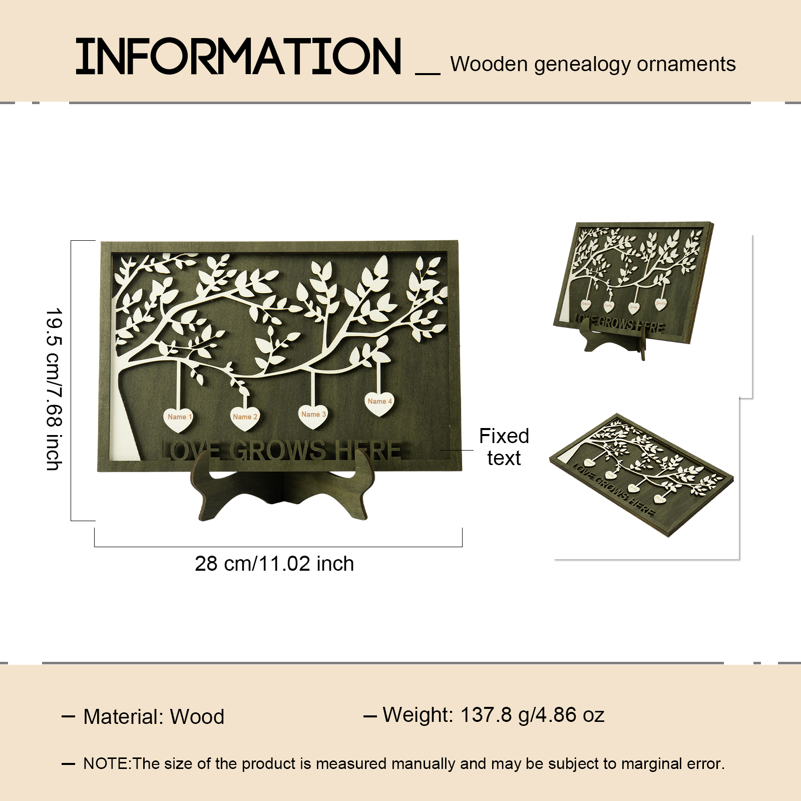 Family Tree Wood Frame Personalized Family Tree Sign Engrave 4 Names Keepsake Gifts