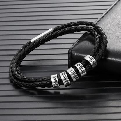 Leather Braided Bracelet Men Bracelets Personalized 5 Names 5 Beads Gifts For Dad