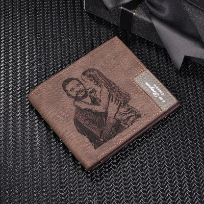 Deep Brown Personalized Leather Wallet Engraved Photo Short Purse Gifts For Men