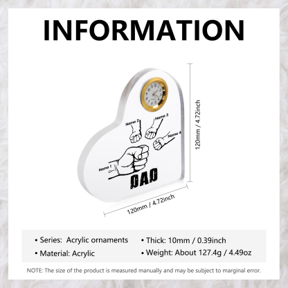 Father's Day Gifts Acrylic Heart Keepsake Personalized Fist Bump Heart Sign with 4 Names