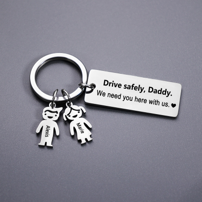 Personalized Keychain with Kid Charm Engraved 2 Names Family Keychain for Him