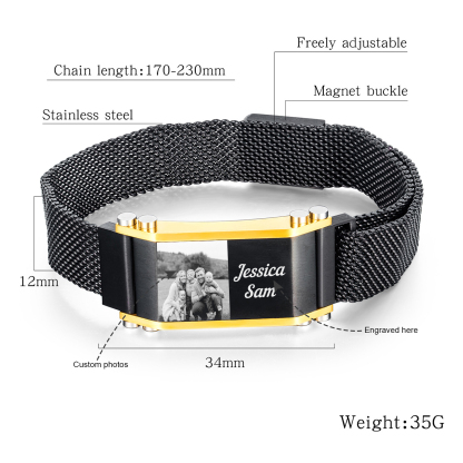 Personalized Photo Bracelet Custom Magnetic Chain Men's Bracelet Bangle Gifts For Him