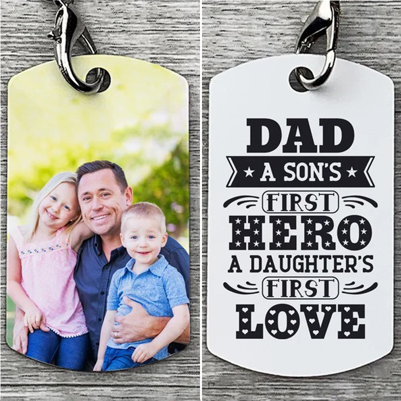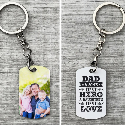 Personalized Photo Keychain Family Keyring for Him, "A son's first hero"