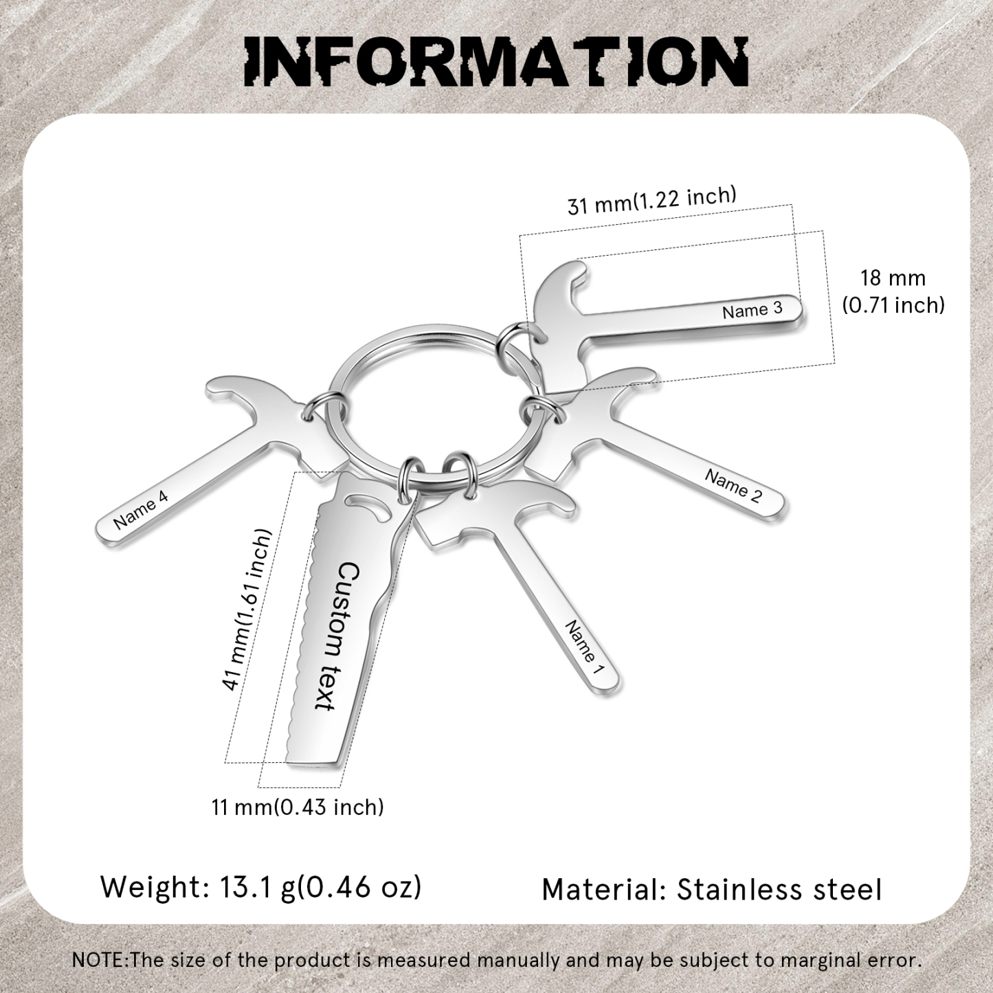 Father's Day Gifts Tool Keychain Personalized 4 Names Stainless Steel Keyring For Him