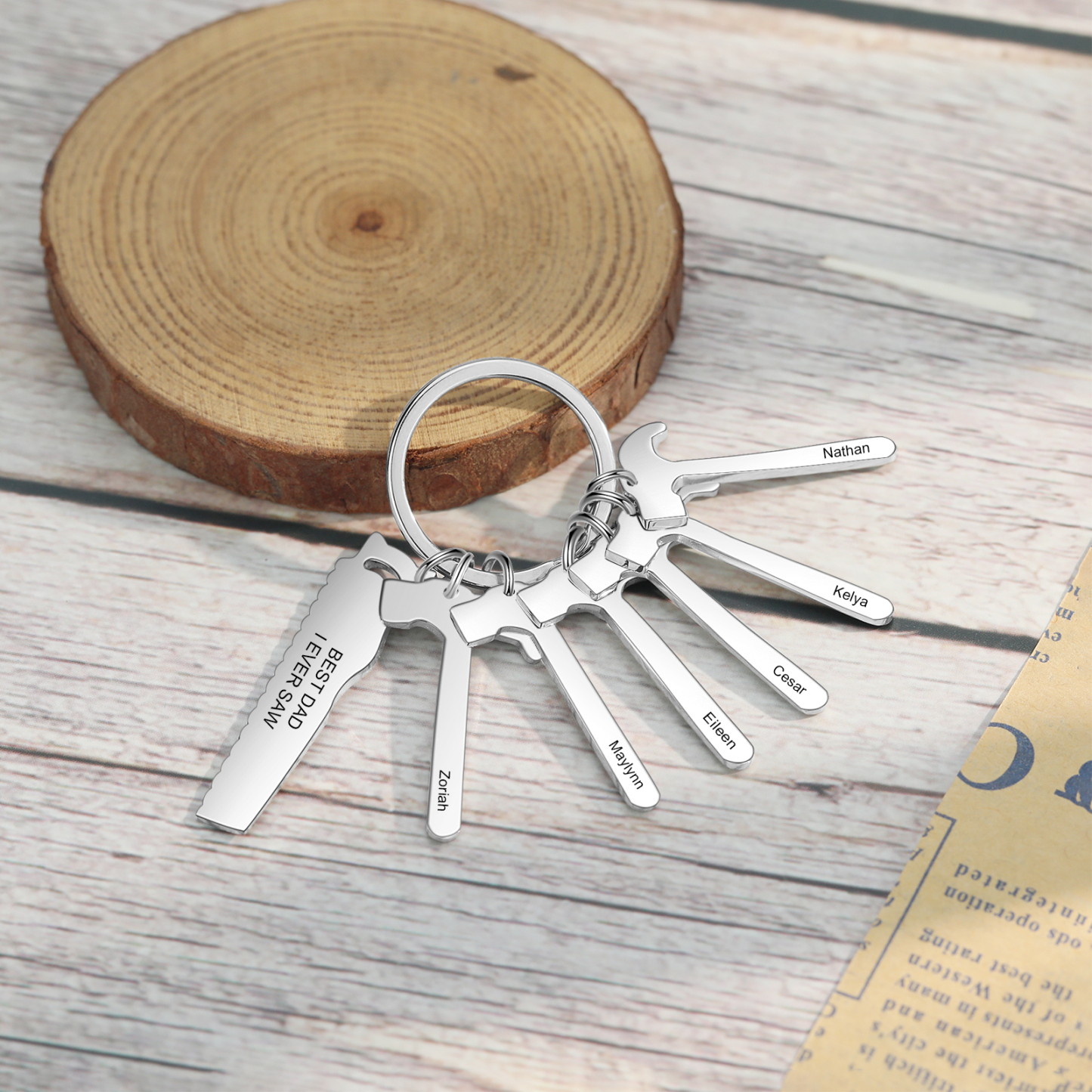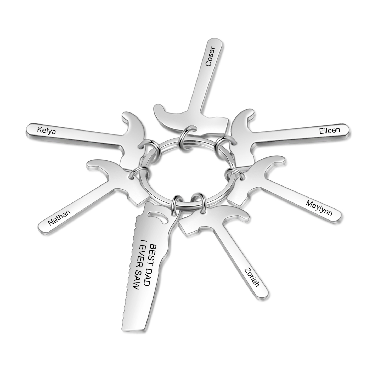 Father's Day Gifts Tool Keychain Personalized 6 Names Stainless Steel Keyring For Him