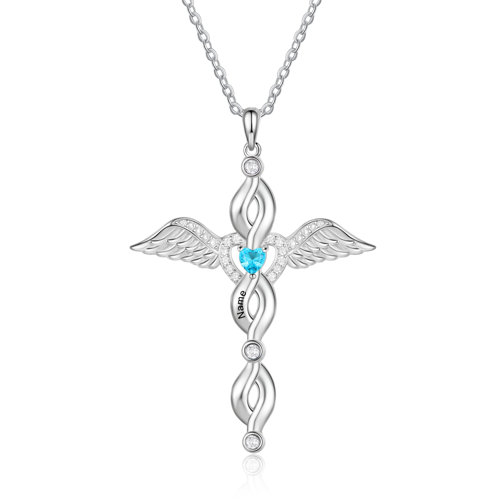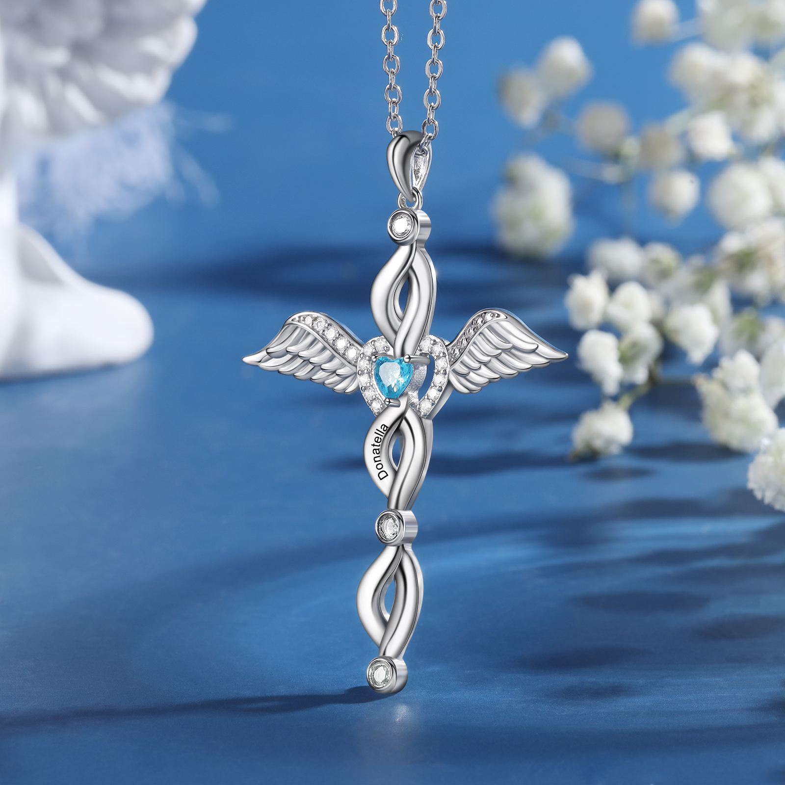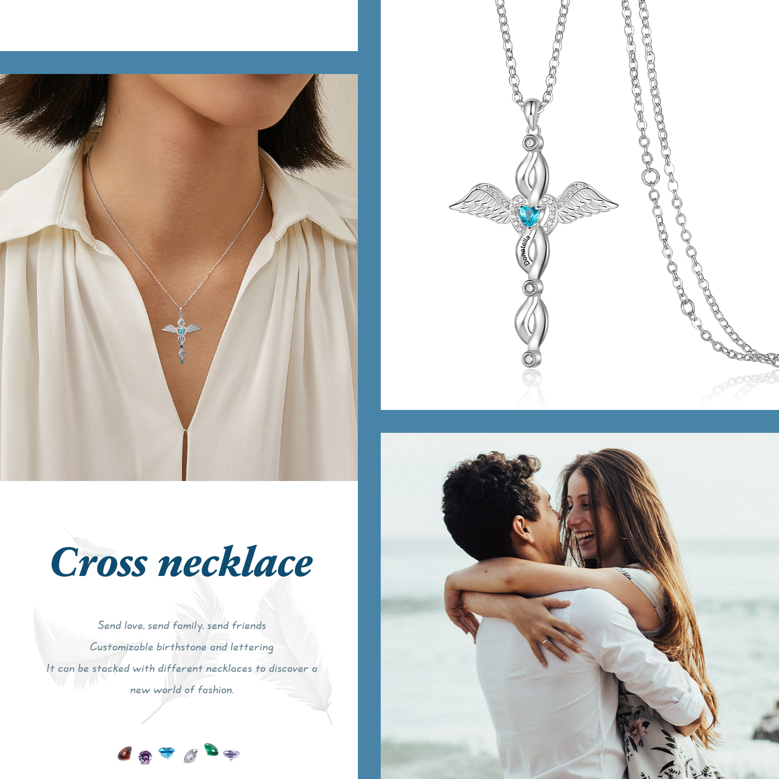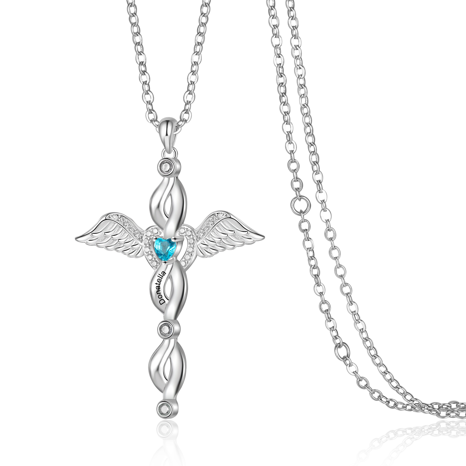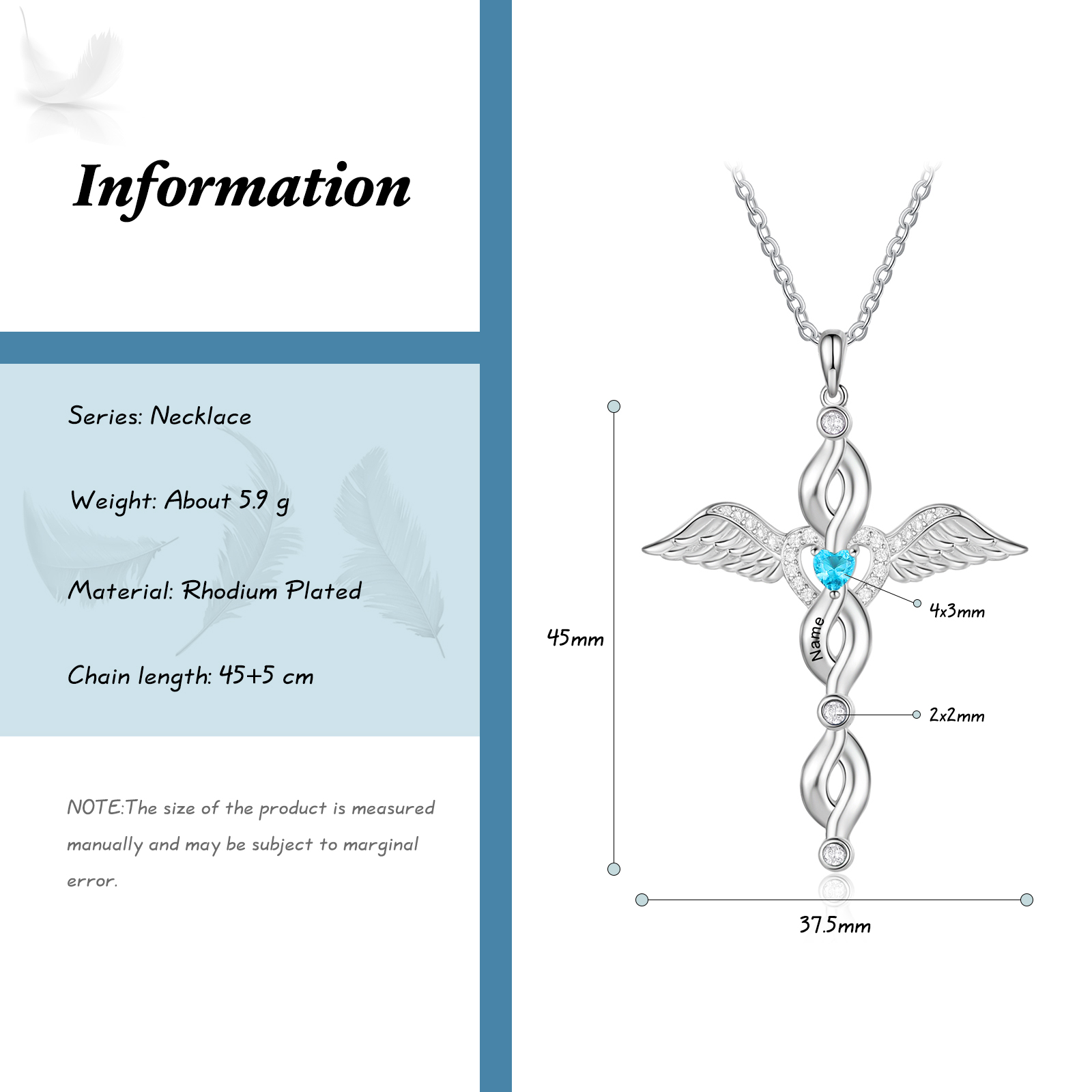 First Communion Personalized Cross Necklace With Names Custom 1 Birthstone Wings Necklace Gifts for Her