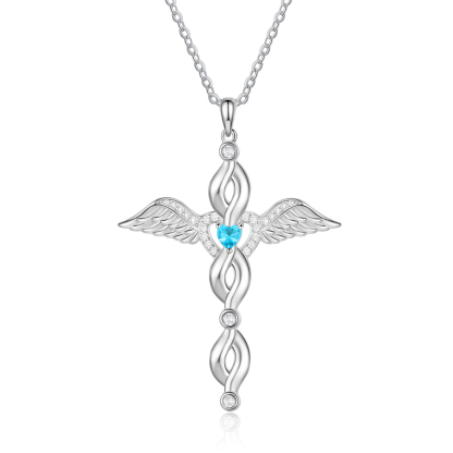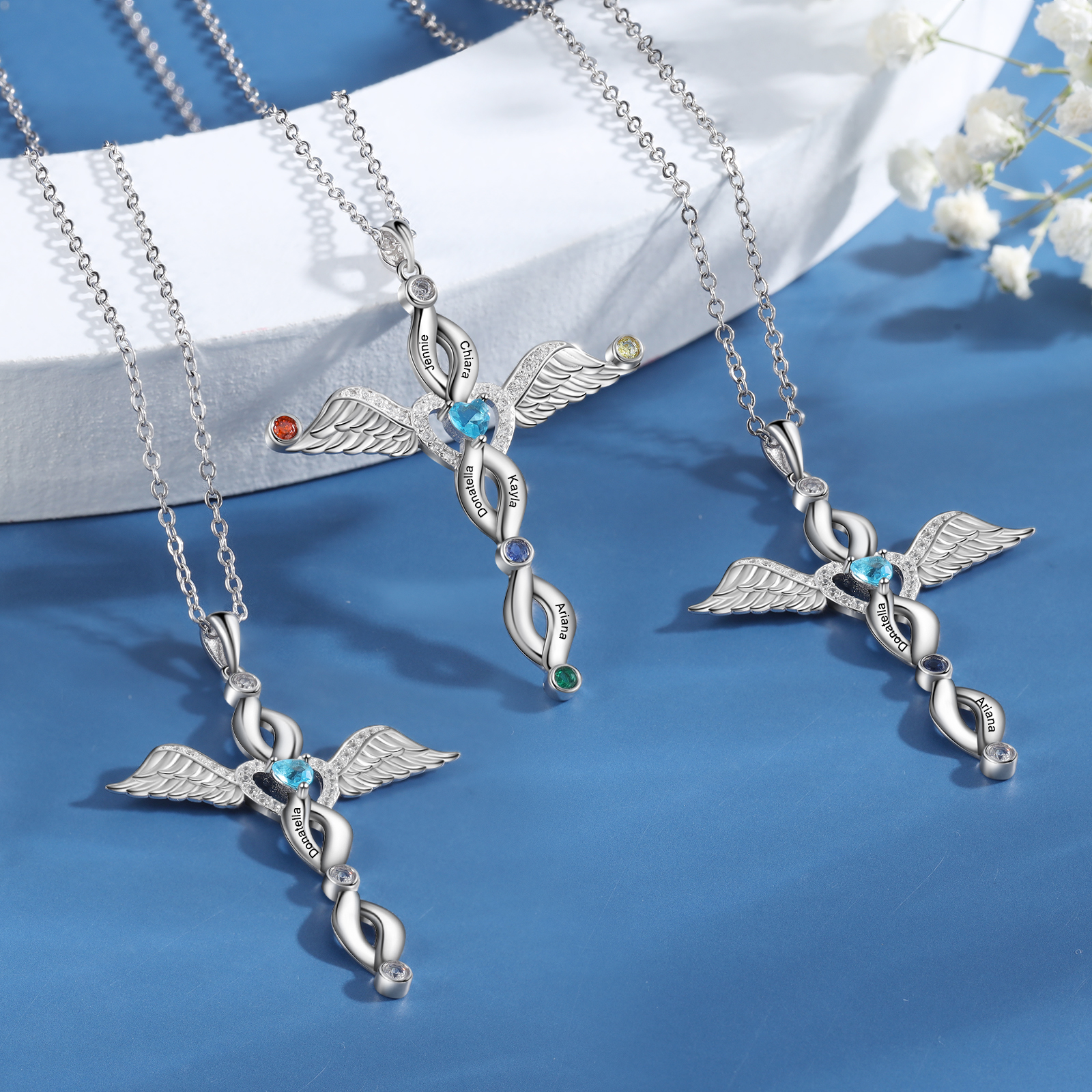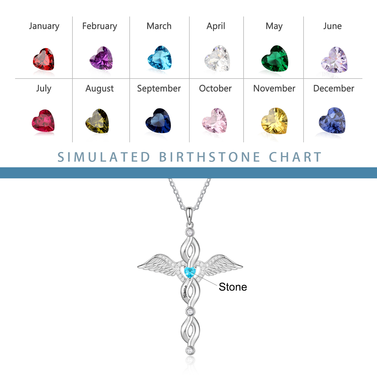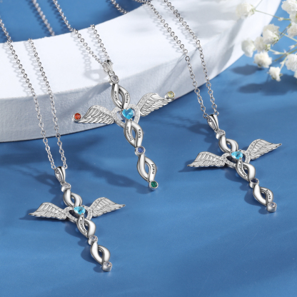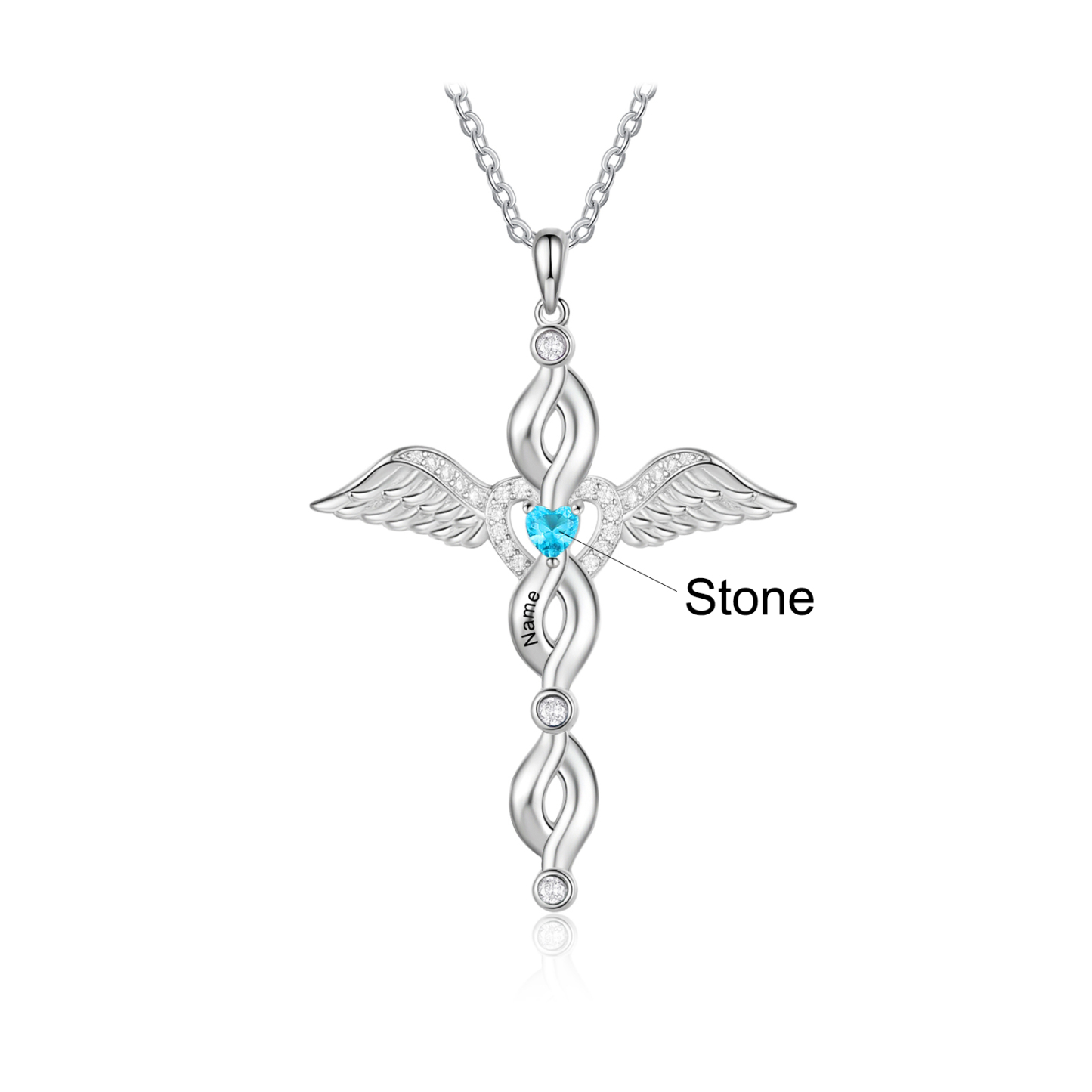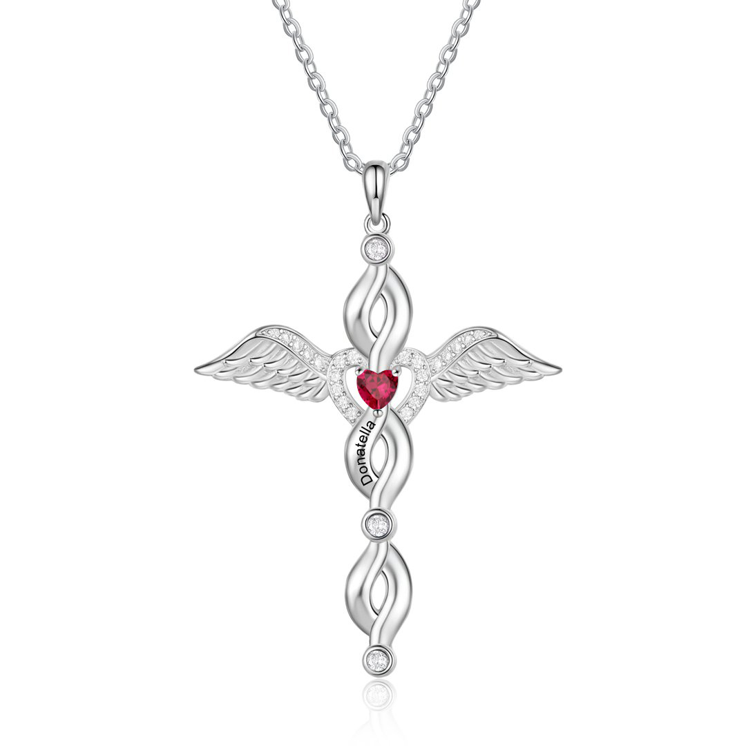 First Communion Personalized Cross Necklace With Names Custom 1 Birthstone Wings Necklace Gifts for Her
