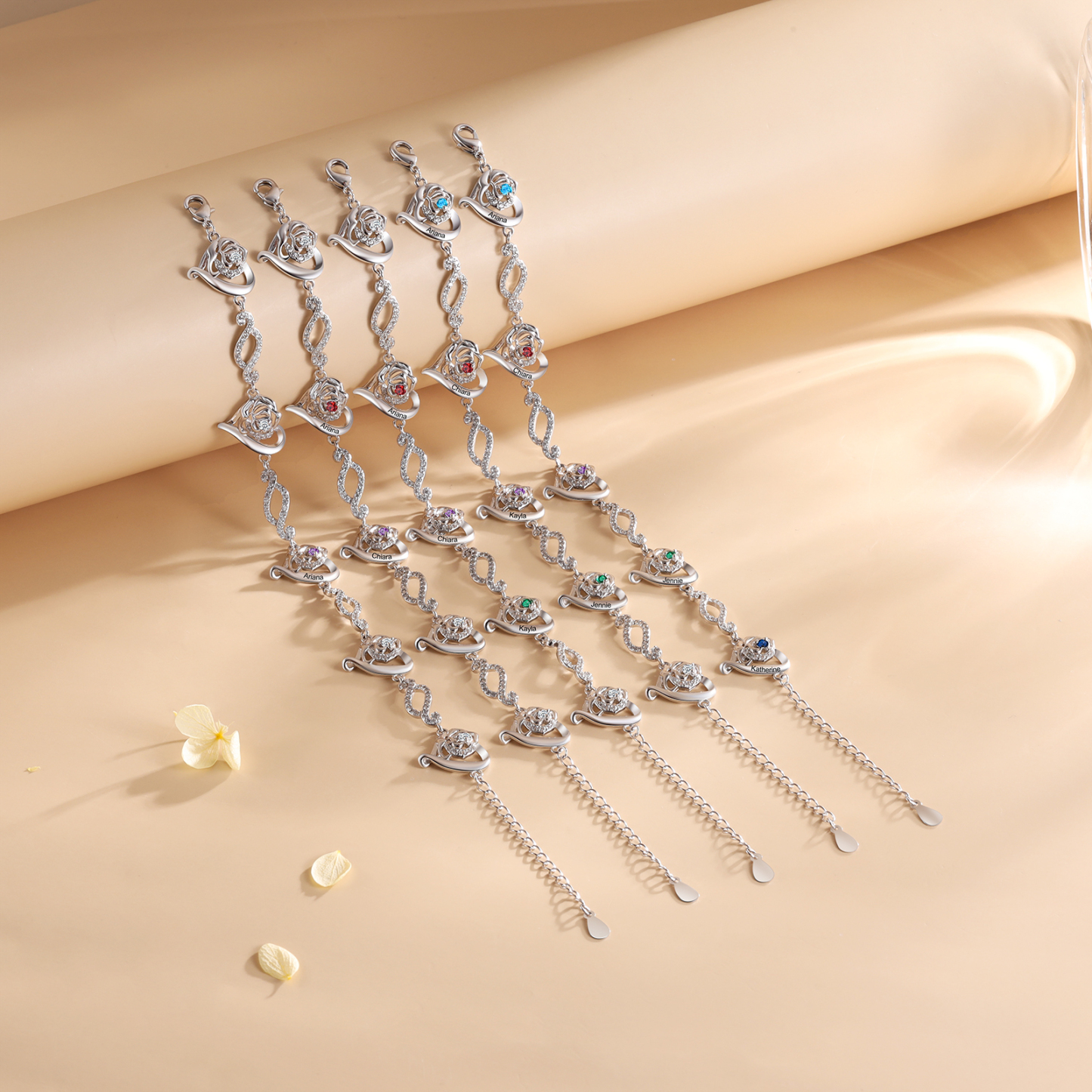 Flowers Bracelet Personalized 1 Birthstone Bracelet Engraved Names Flowers Charm Gifts For Her