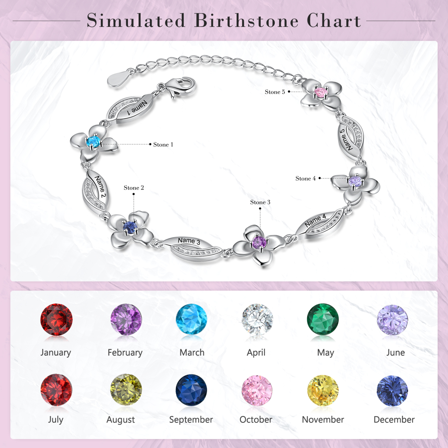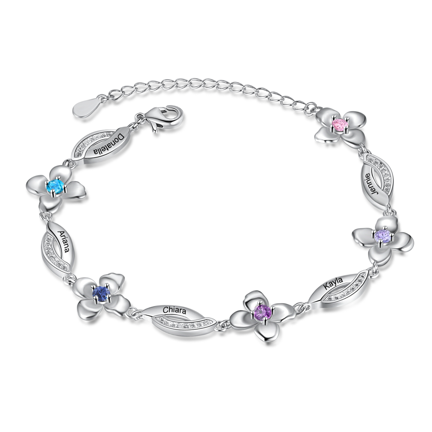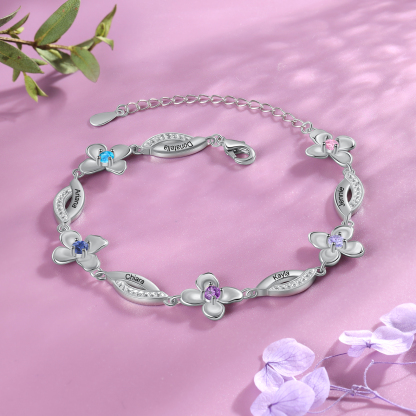 Flowers Bracelet Personalized 5 Birthstone Bracelet Engraved Names Flowers Charm Gifts For Her
