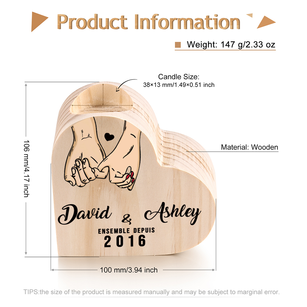 For Couple-Personalized Wooden Heart Candle Holder Pinky Promise Candlesticks