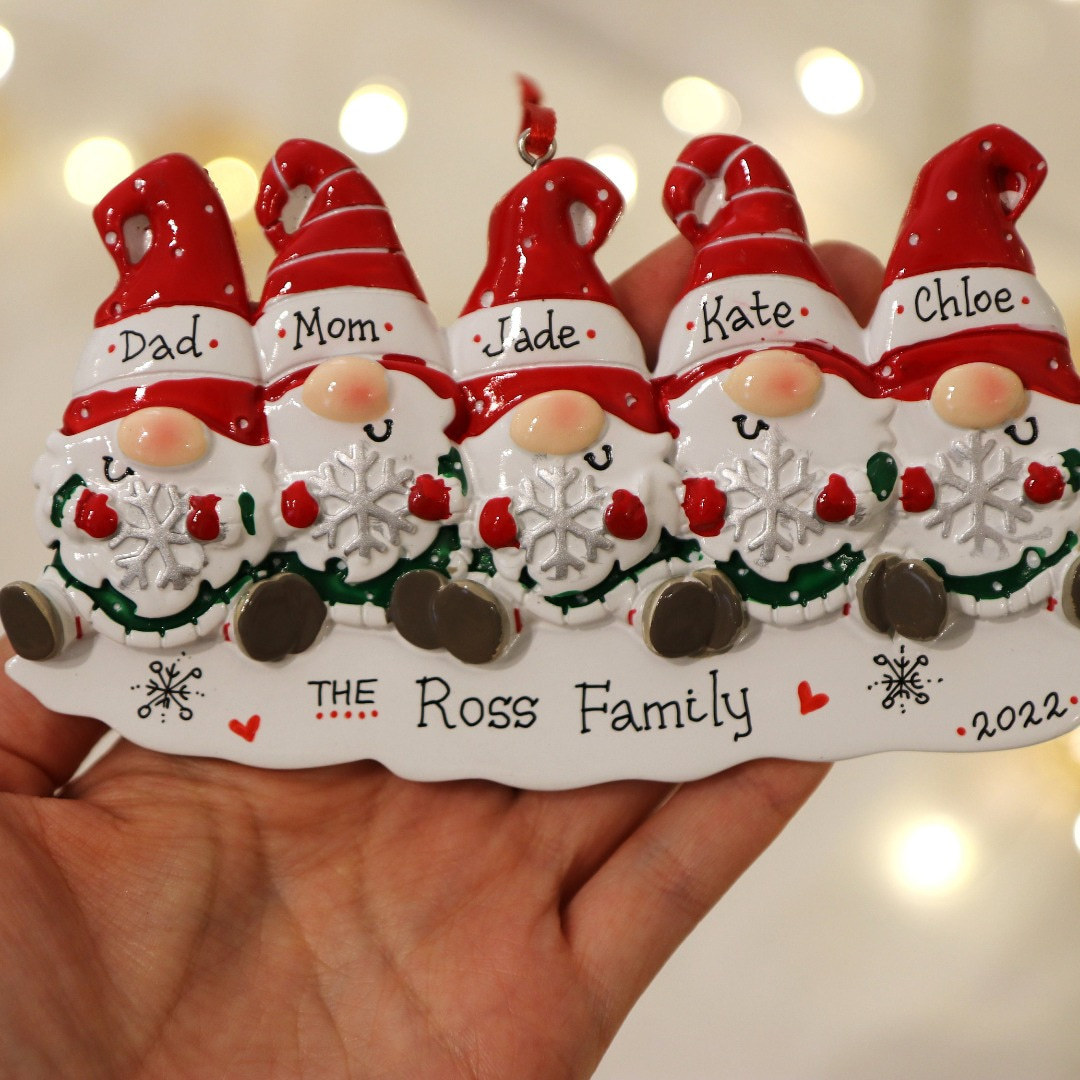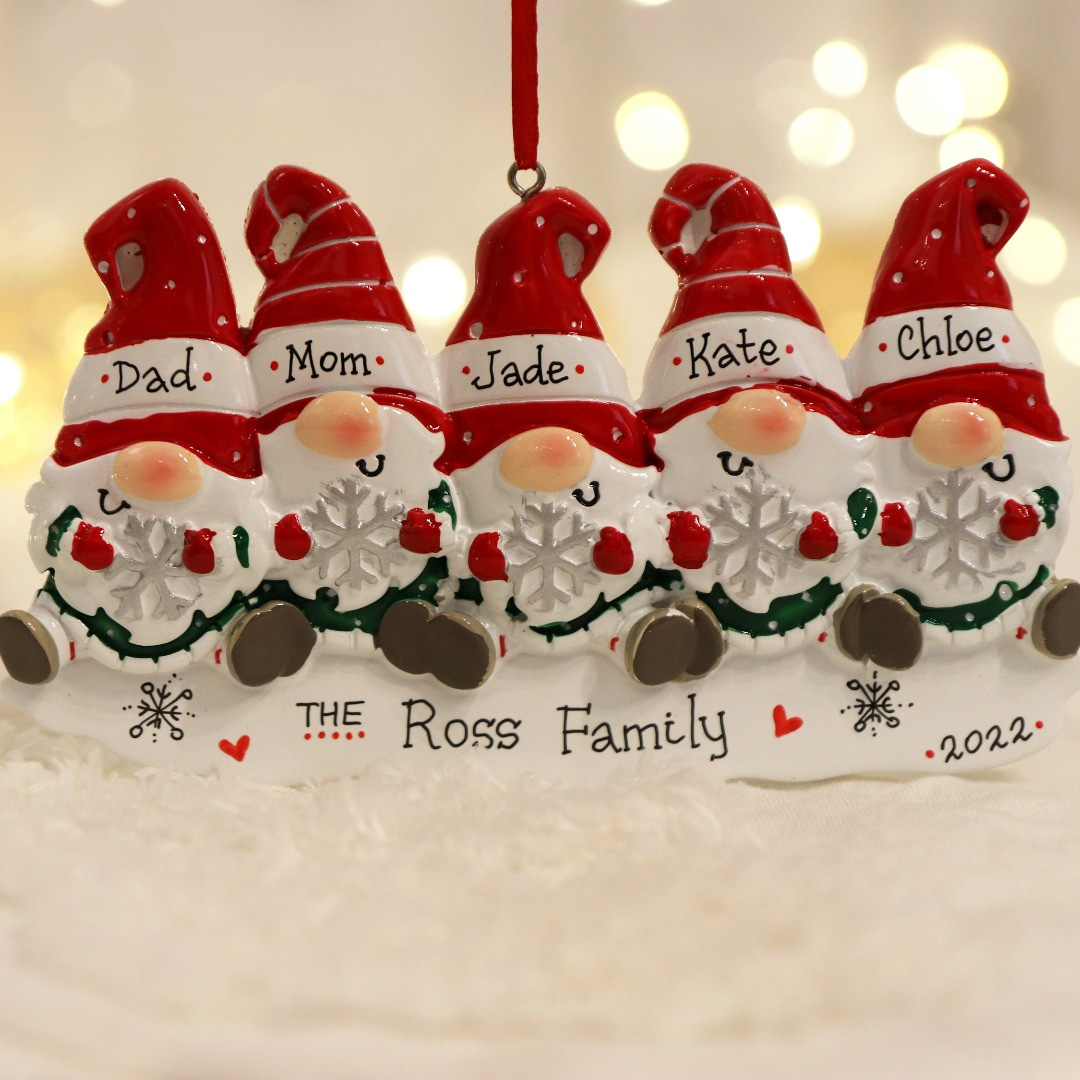Gnome Christmas Ornament Custom 5 Names Hanging Ornament Gifts For Family