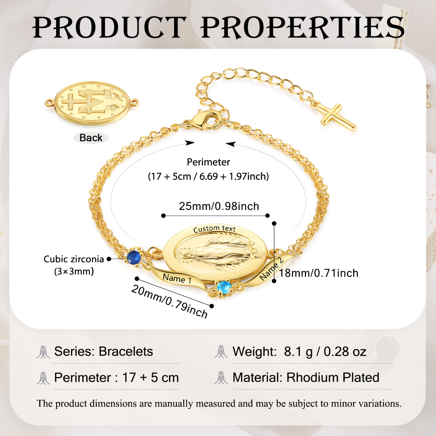 - Personalized bracelet with Virgin Mary medal