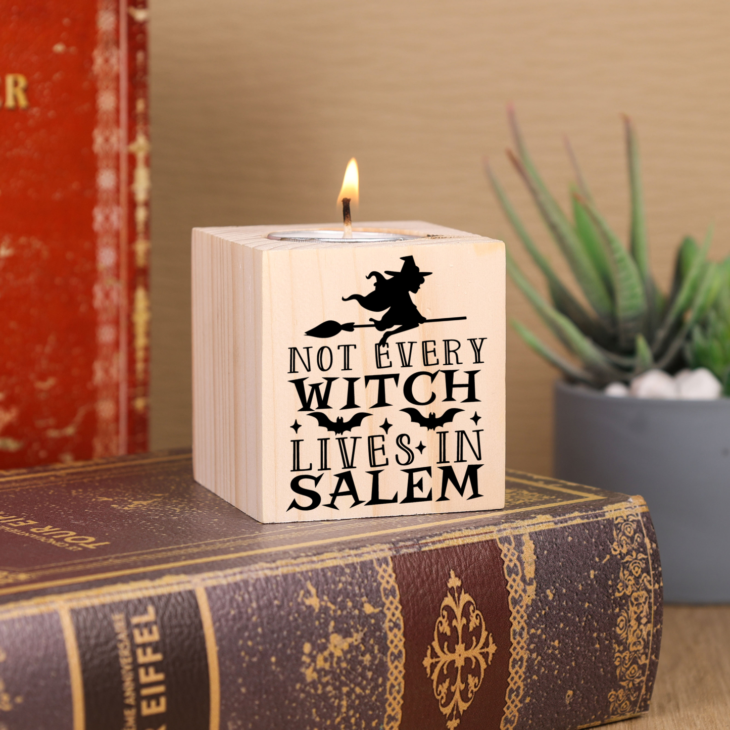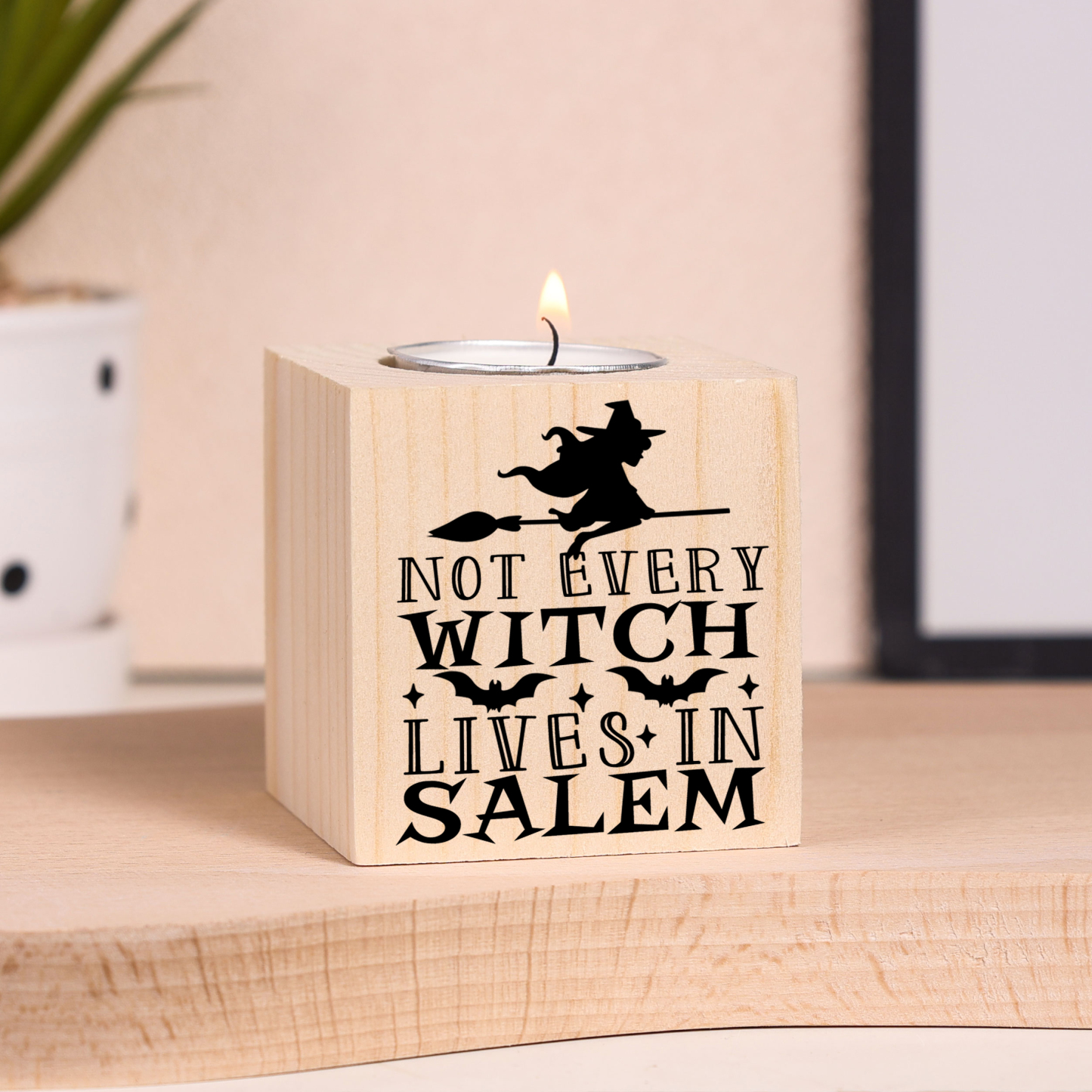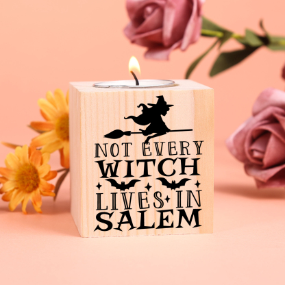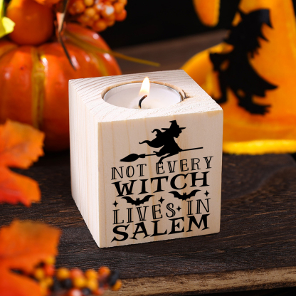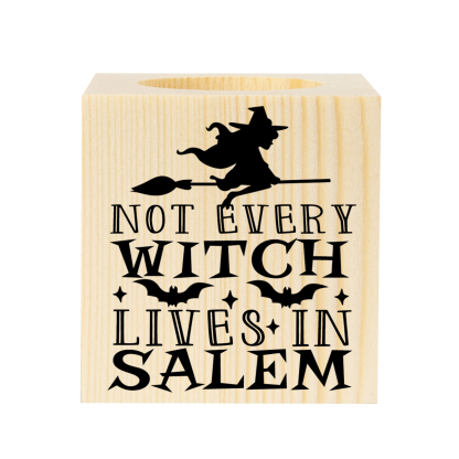 Halloween Wooden Candle Holder Block Candlesticks Halloween Decoration Gift for Family Friends - Not Every Witch Lives In Salem