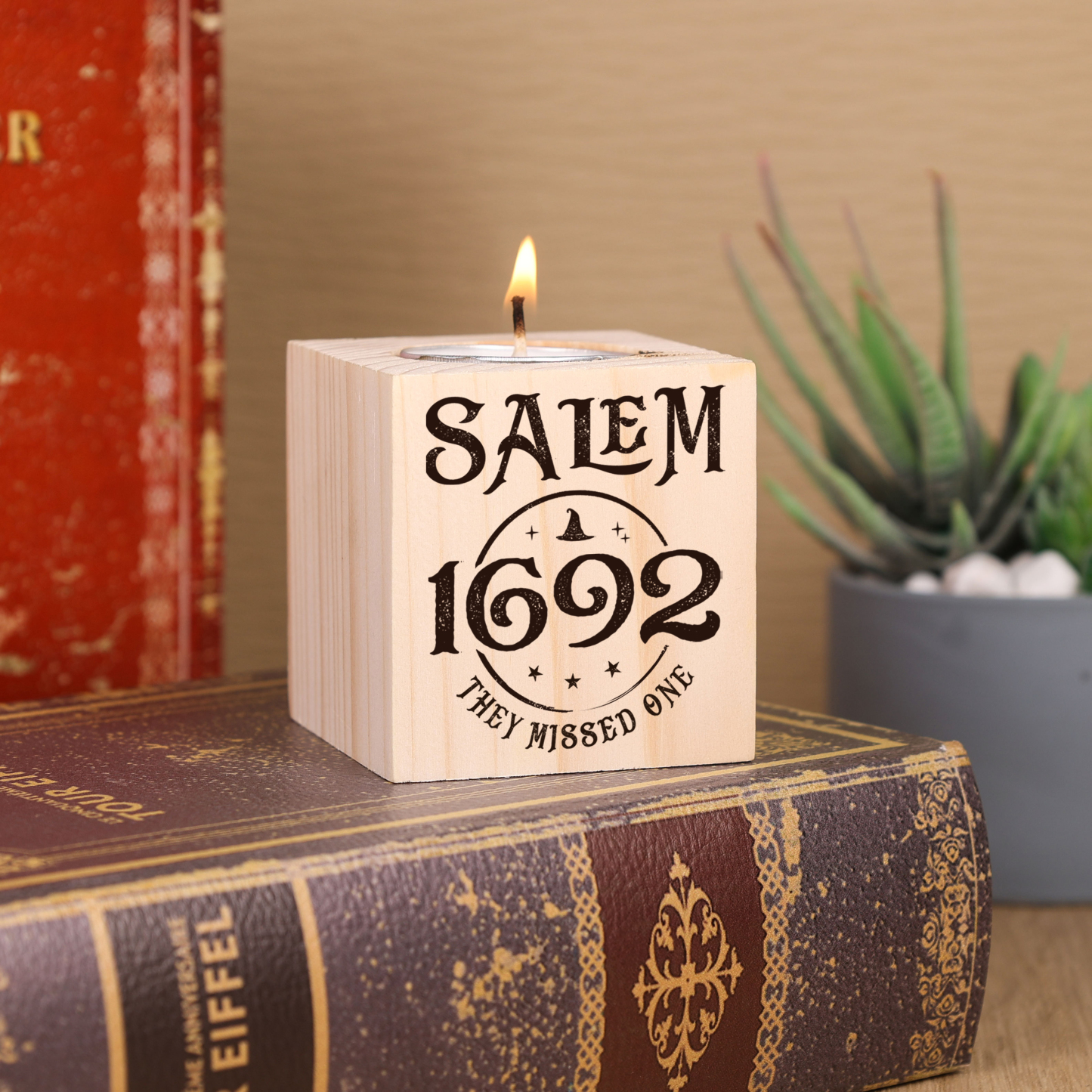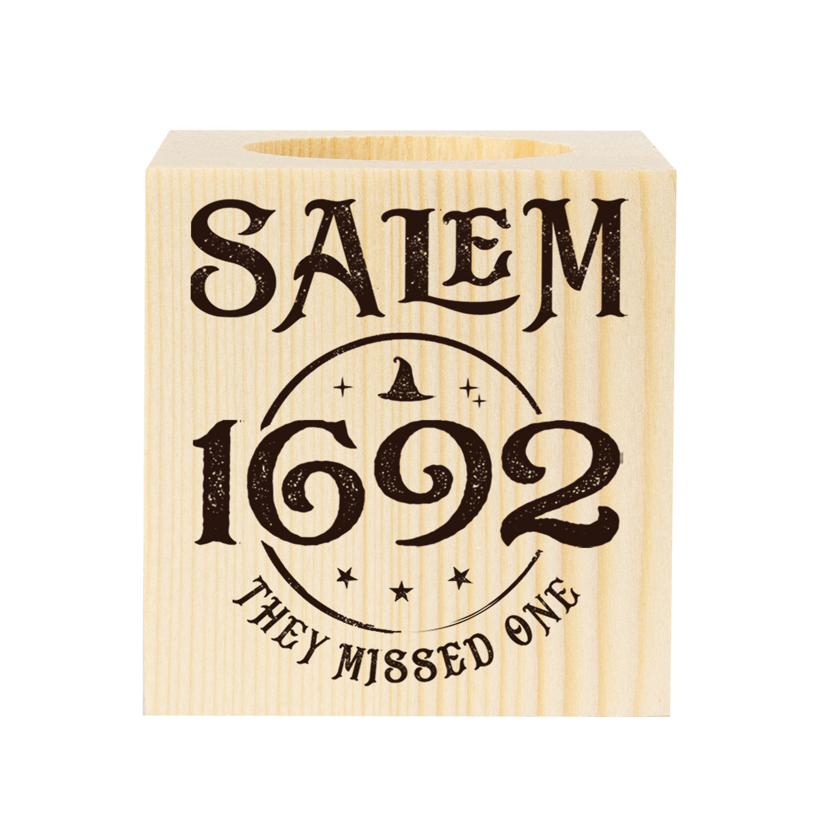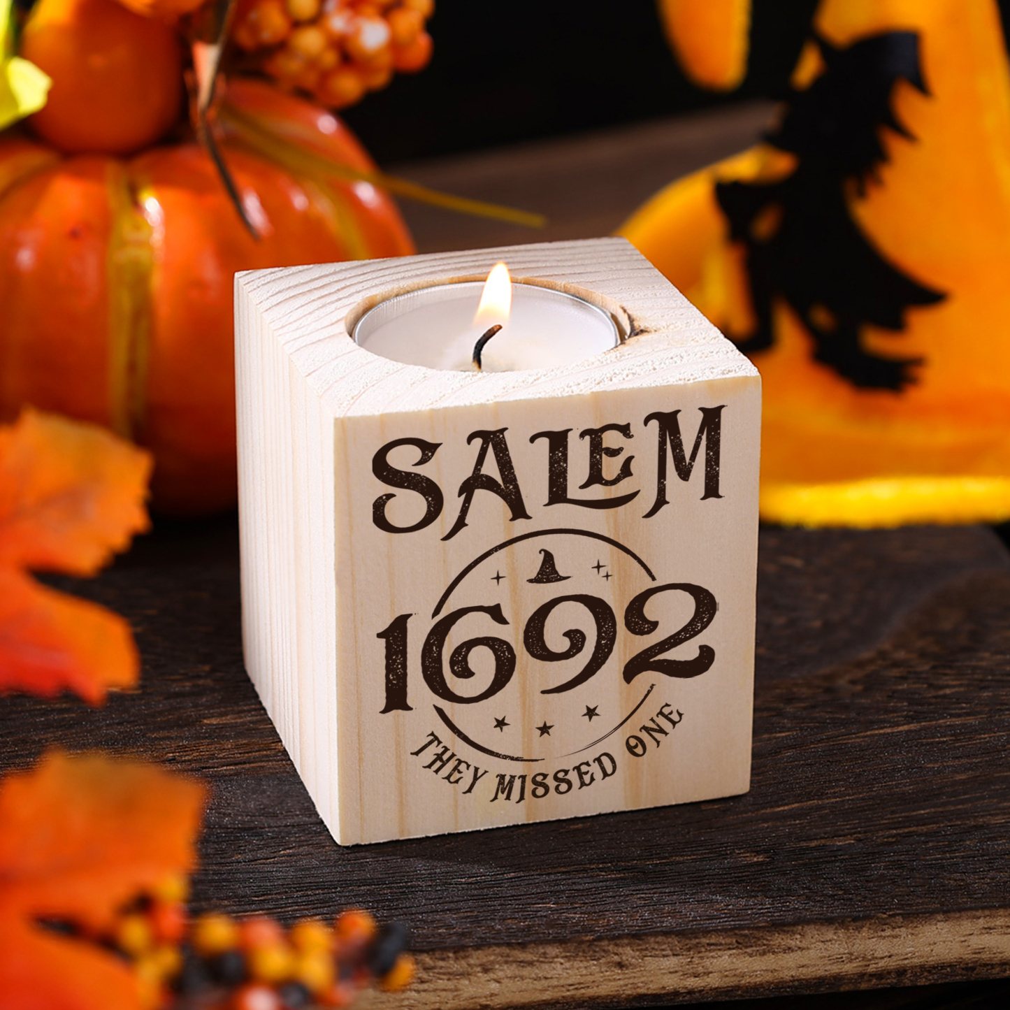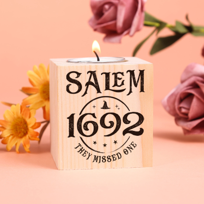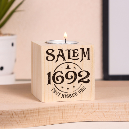 Halloween Wooden Candle Holder Salem Candlesticks Block Candle Holder Halloween Decoration Gift for Family Friends