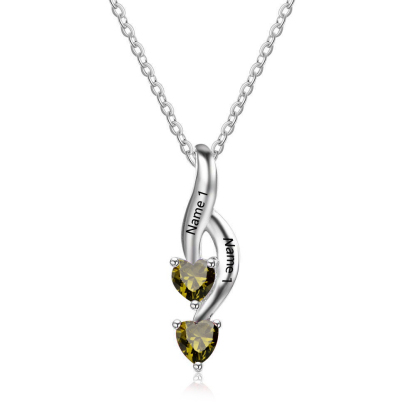 Personalized Necklace With 2 Heart Birthstones Engraved Names Peridot Jewelry Gift For Women